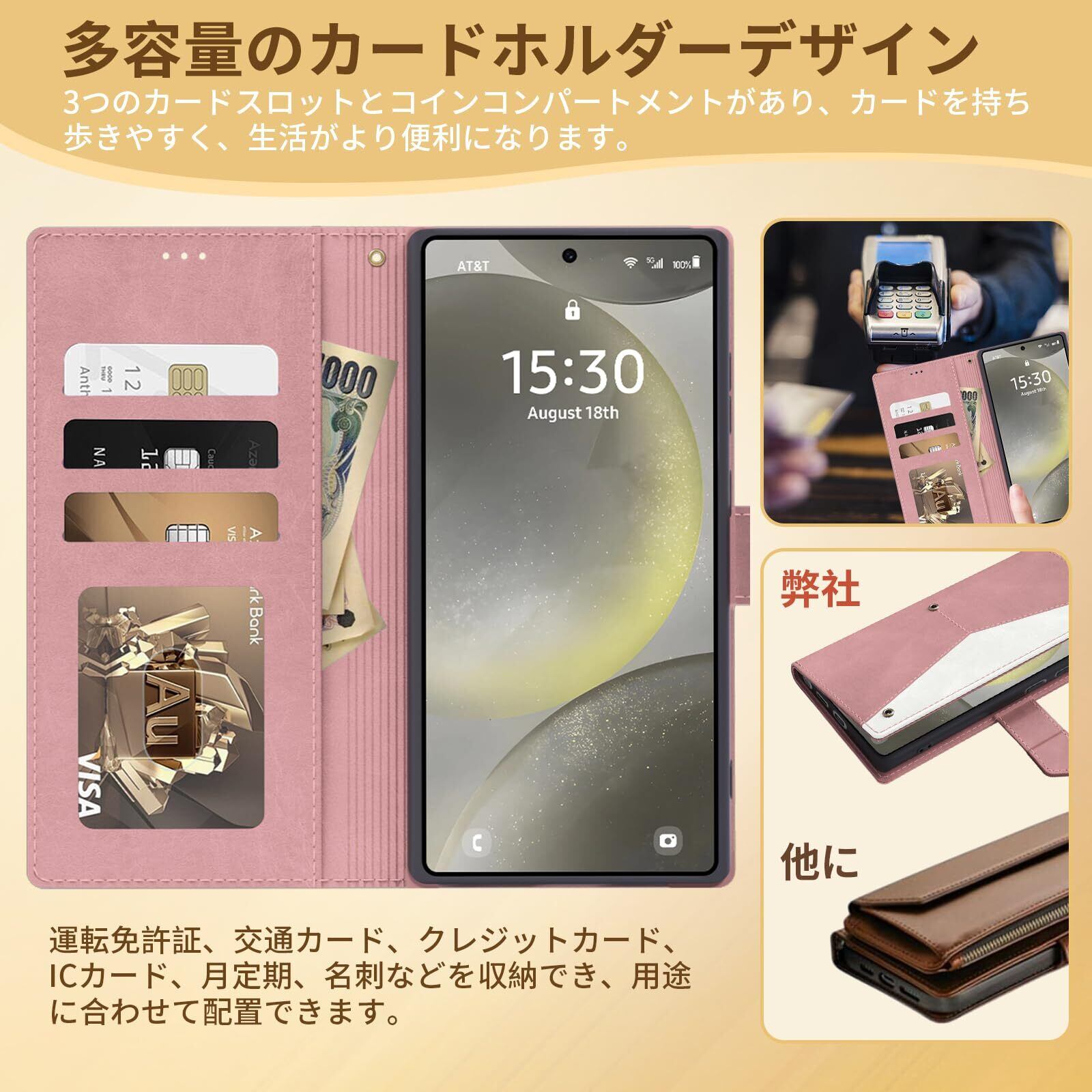 Galaxy S25 Ultra ケース 手帳型 財布型 全面保護 耐衝撃 ギャラクシー S25 Ultra スマホケース カード収納 肌感レザー ラップホール付き 横置き機能付き マグネット内蔵 SC-52F SCG32 携帯カバー 指紋防止 耐摩擦 ファッション ベルトマグネット,ピンク