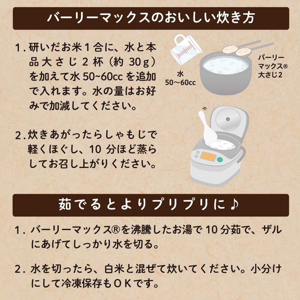 【内容量】800g 話題のスーパー大麦、バーリーマックスⓇの大容量パックです。【栄養成分表示(100gあたり)】エネルギー:343kcal/たんぱく質:14.9g/脂質:7.8g/炭水化物:65.8g(糖質:40.9g/食物繊維:24.9g)/食塩相当量:0.0013g ※レジスタントスターチ:3.6g/βグルカン:4.9g/フラクタン:10.7g/水溶性食物繊維:6.8g/不溶性食物繊維:15.0g