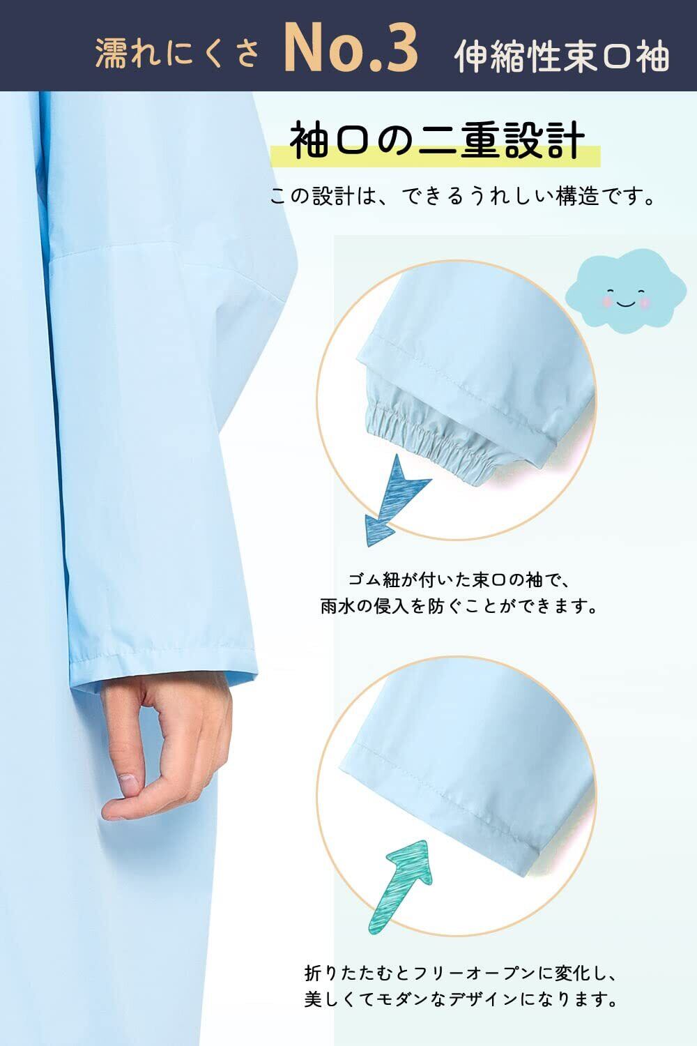 [自転車通学や通勤に最適]: 身幅と着丈も長くし、肩幅を広げ、厚みを持たせました、防水性を高め、丈夫でありながら重さは増えておらず。レインコート衣の長さ112cm、袖の長さ72cm、前の長さ105cm、後ろの長さ105cm。適応身長155~180cmであり、ゆとりがあり、男女兼用、サイクリング、モーターサイクル、通学や通勤に最適。