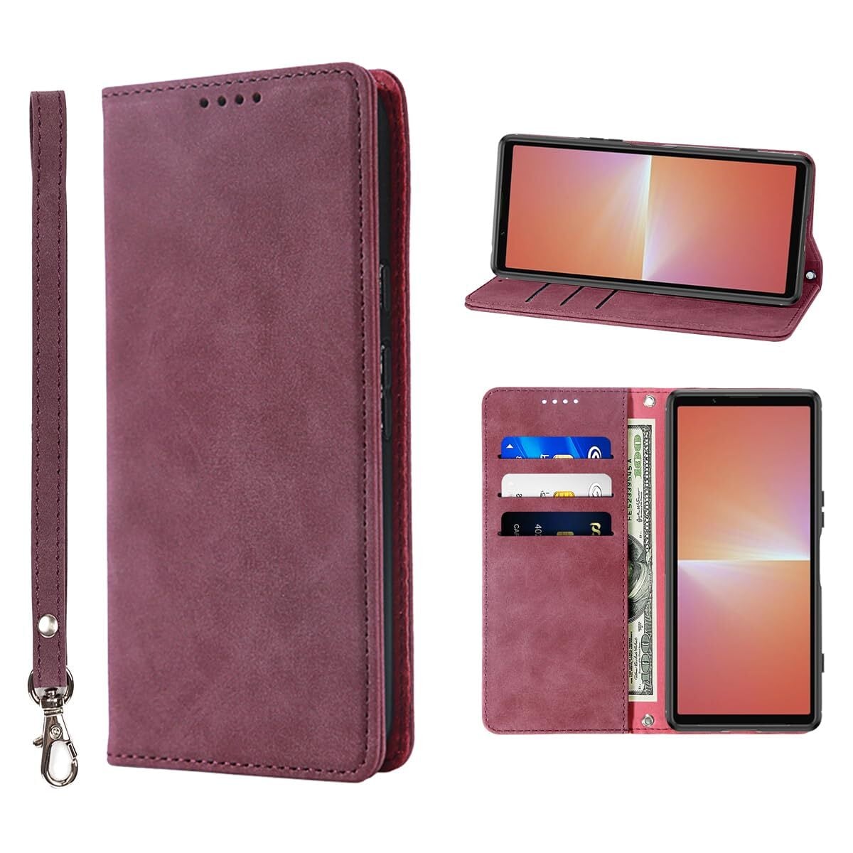 NanHou Xperia 5 V ケース 手帳型 つや消し レザー スタイル質感 カバー 手帳型 耐衝撃 保護 SO-53D SOG12 カバー 内蔵マグネット 財布型 携帯カバー カードポケット スタンド機能 リストバンド Sony エクスペリア 5V 手帳型 - ダークレッド | BASE SHOP