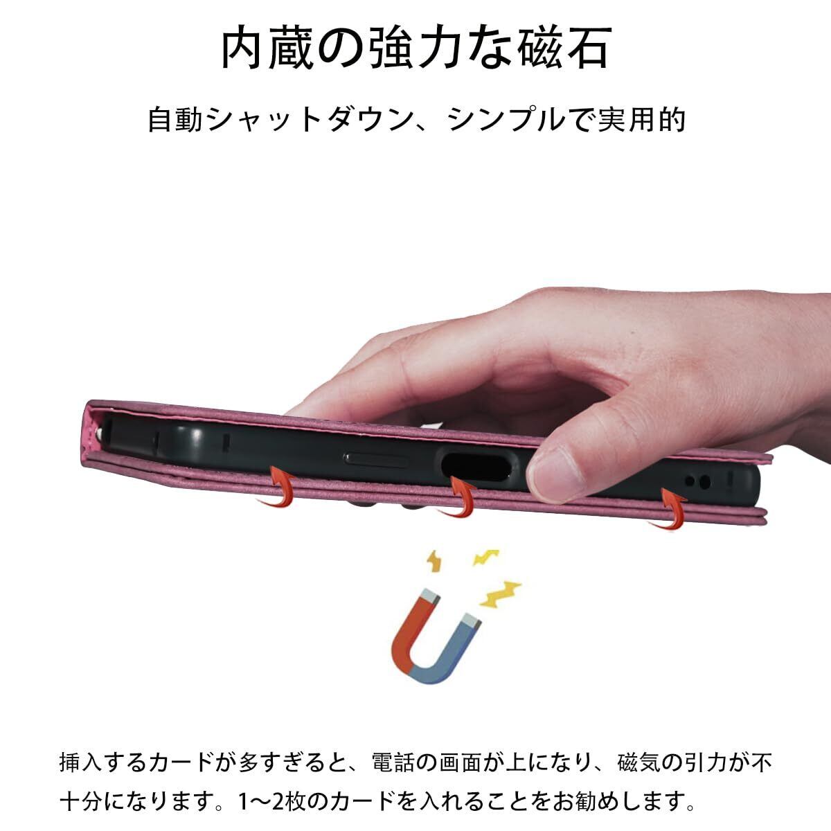 【多機能スタイリッシュデザイン】(1)ブラケット:完璧な視角、調整可能なスマートブラケット(2)財布:スタイリッシュな3つのカードスロットと1つの現金スロットを内蔵する(3)磁気吸引:ケースに磁気閉鎖装置があり、カードは磁気の影響を受けない(4)便利なストラップを装備した美しいリストバンド。