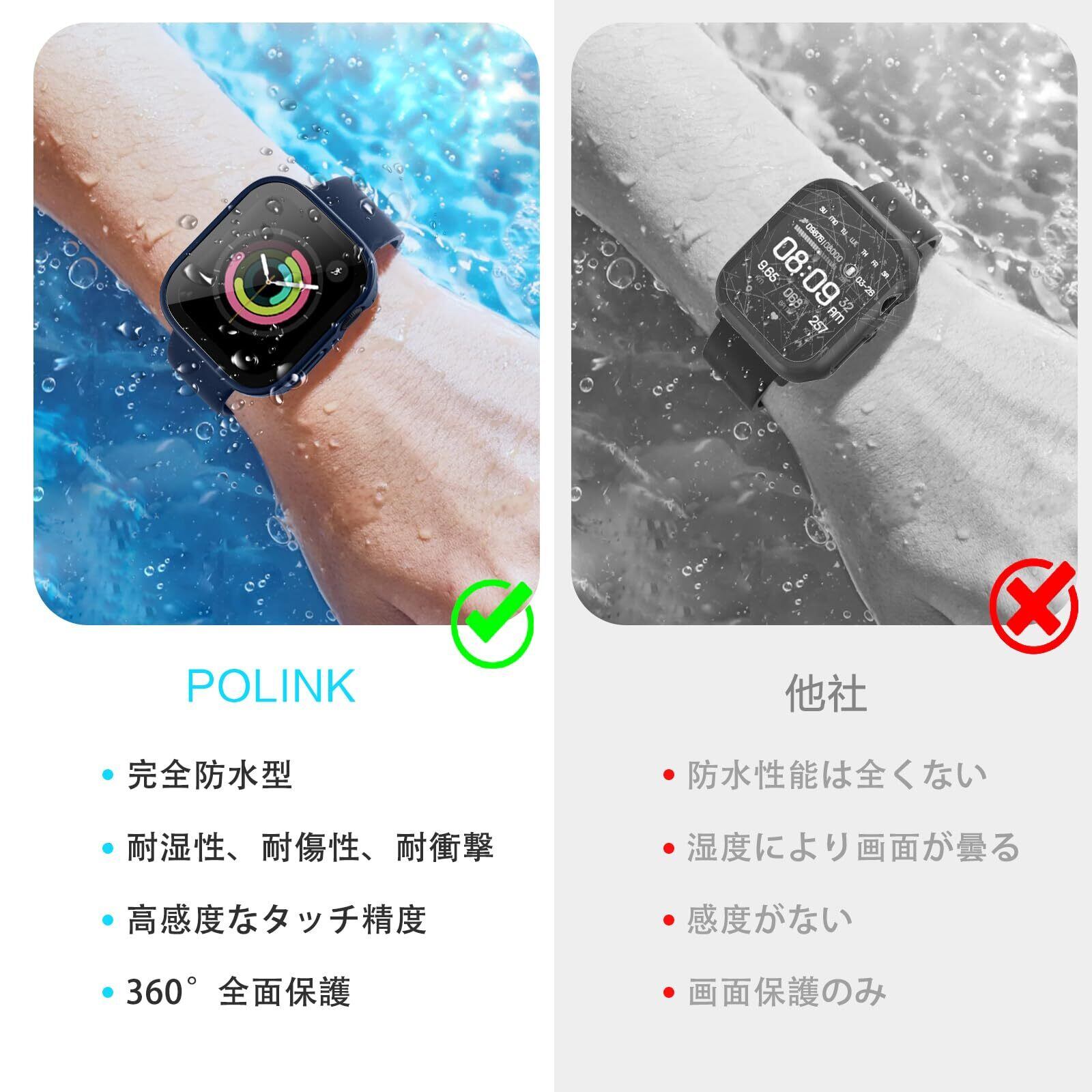 【2in1保護設計】POLINK 対応 アップルウォッチ カバー Series 10/9/8/7/SE/6/5/4 41mm PC素材 強化ガラス 対応 Apple Watch カバー防水 一体型 新デザイン 3D直角エッジ超薄型 高耐久 耐衝撃 高透過率 指紋防止 対応 Apple Watch ケース 全面保護 ブルー