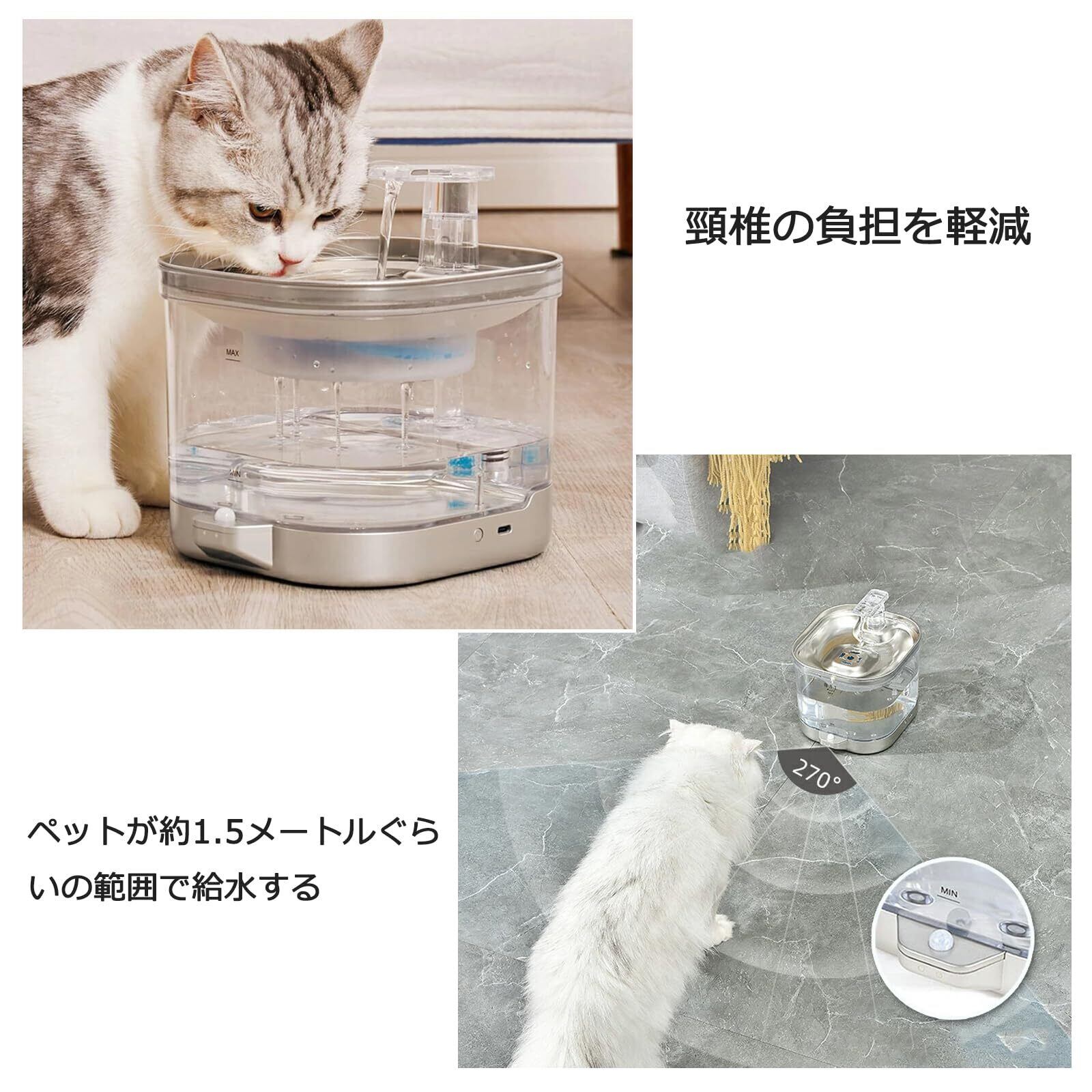 DFBL 猫 水飲み器 ステンレス製 ペット 自動給水器 2L 循環式大容量 20dB 低騒音設計 循環式 猫 給水器 3重濾過 清掃使用の容易さ 活性炭フィルター2個付き上から給水 多頭飼い 循環 掃除 猫用 犬水飲み器 | BASE SHOP