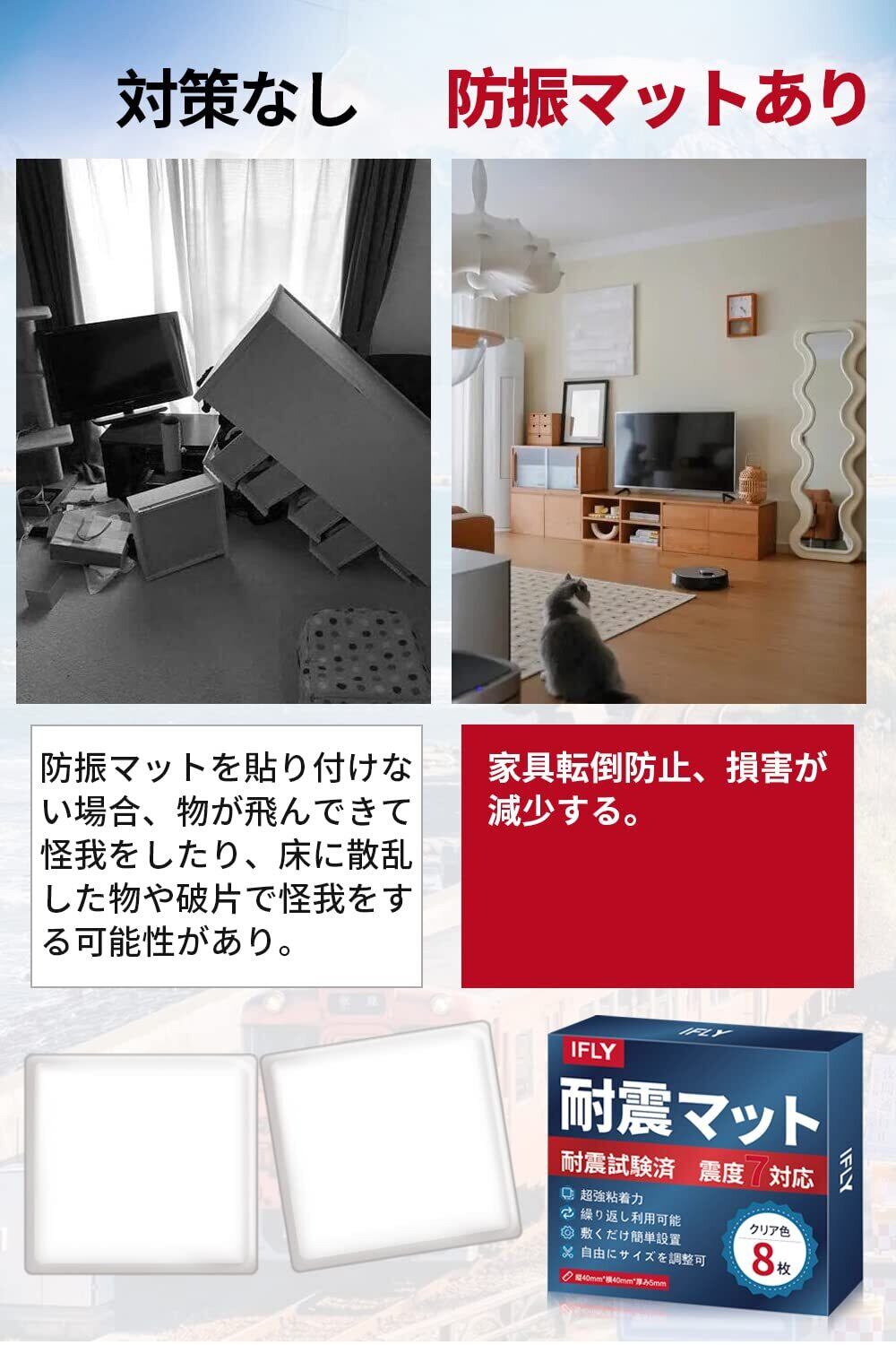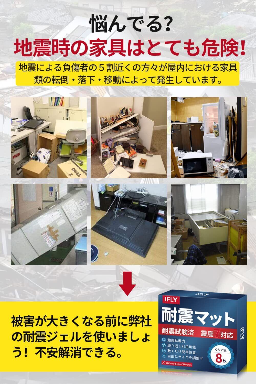IFLY 耐震ジェル 2023年 耐震マット地震 転倒防止 防振マット耐荷重100kg 家具転倒防止 水洗い可能 静音マット 両面粘着 振動吸収 地震対策 防炎対策 静音ジェル 震度7まで対応 (12) | BASE SHOP