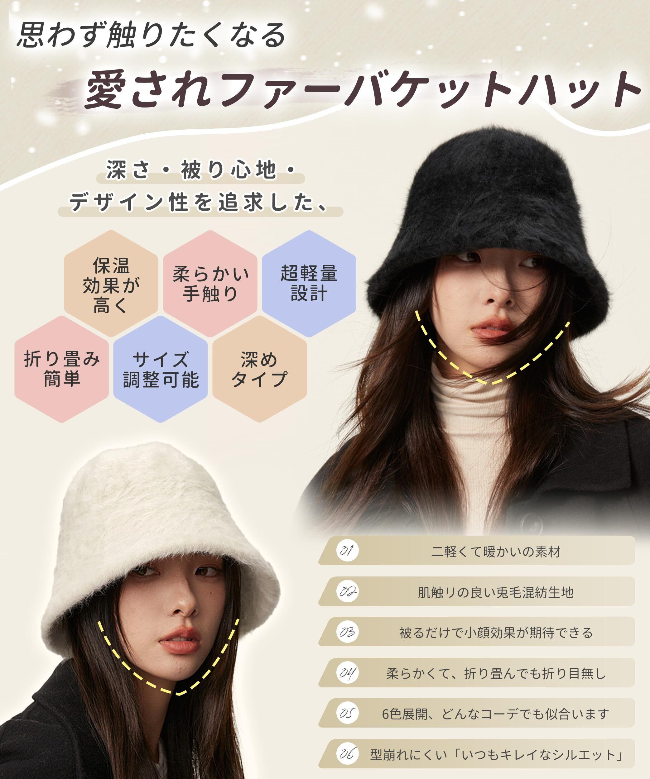 [SIVAN] 帽子 レディース バケットハット 【断熱軽量素材・もこもこ防寒対策・ウサギのようなふわふわ感】 防寒 暖かい ふわふわ 無地 小顔効果 折りたたみ ハット 可愛い おしゃれ 防寒 自転車 秋冬用 プレゼント | BASE SHOP