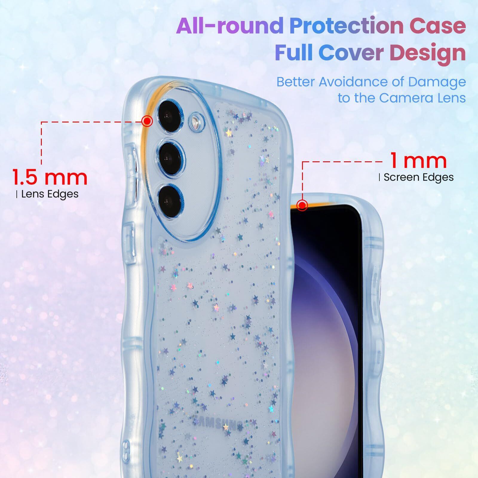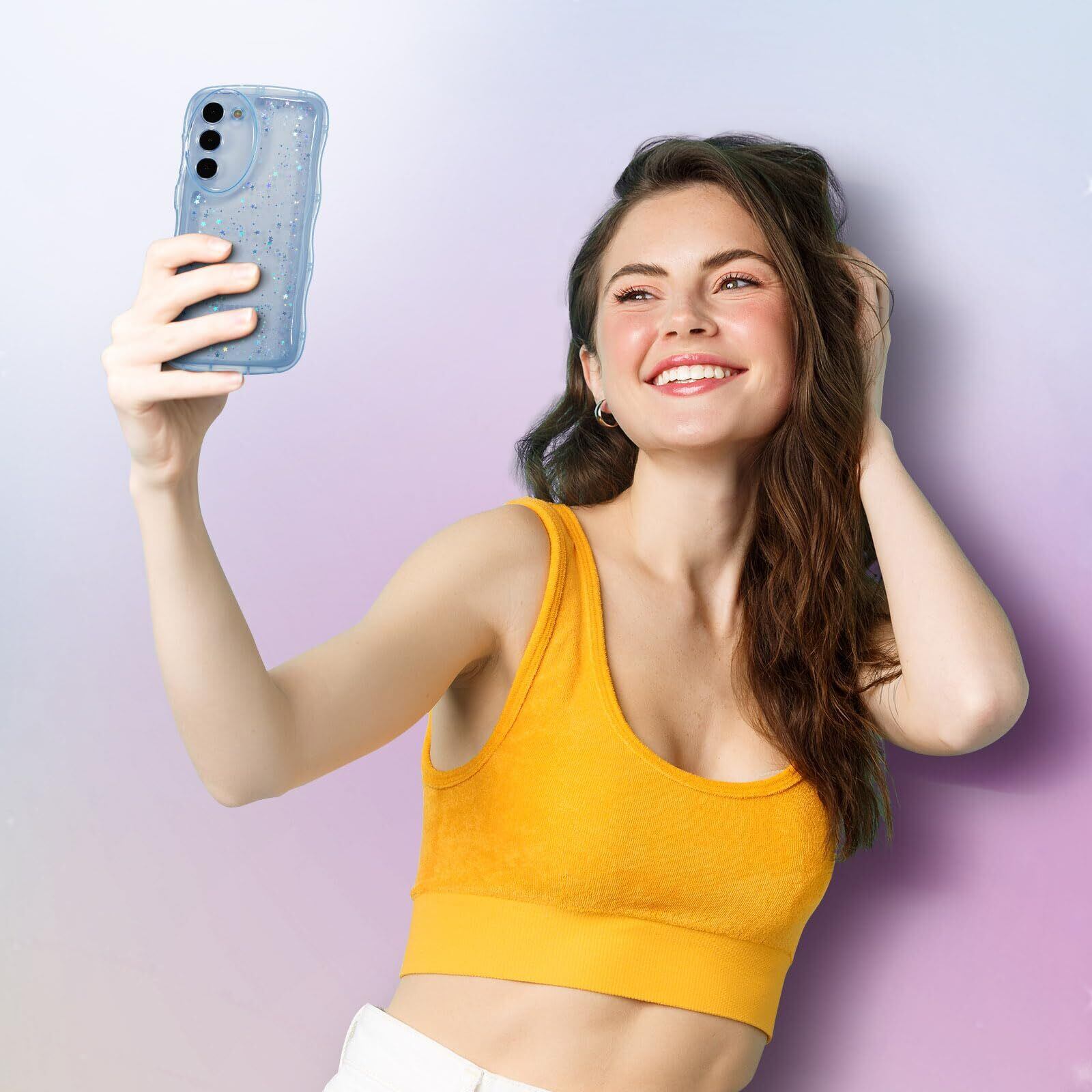 QLTYPRI Galaxy A54 5G ケース クリア TPU カバー ウェーブ おしゃれ 韓国 可愛い ウェーブ グリッター 透明 薄型 軽量 耐衝撃 滑り止め (SC-53D / SCG21) スマホケース ワイヤレス充電対応 ストラップホール付き ギャラクシーA54 ケース 6.4インチ 対応 - ブルー | BASE SHOP