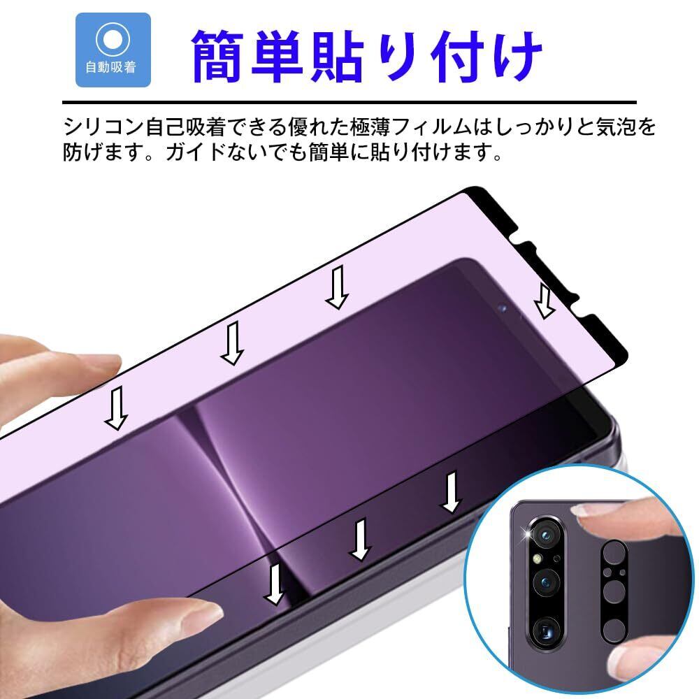 【4枚セット】対応 Xperia 1 V 用 フィルム,ブルーライトカット 旭硝子 xperia 1 V 用 ガラスフィルム【2枚】+レンズ保護フィルム【2枚】 超薄型 Xperia 1 V 用 フィルム 全面保護 日本旭硝子製 Xperia 1 V 用 強化ガラスフィルム カメラフィルム エクスペリア1 V用 液晶保護フィルム レンズフィルム ケースと相性バッチリ 硬度9H 貼付け簡単