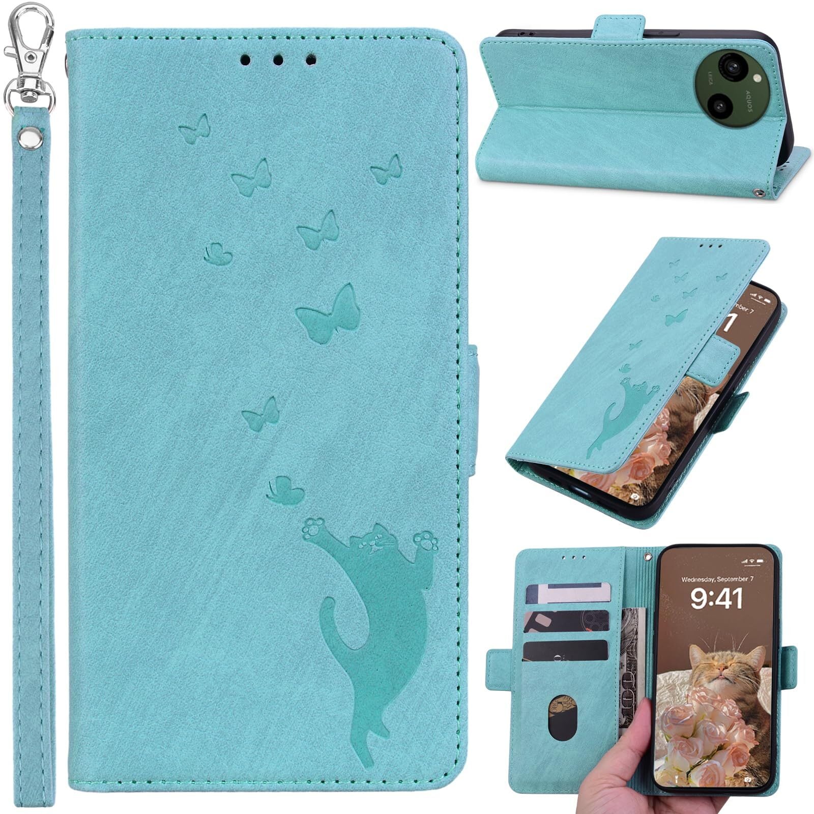 Kitzomi for Sharp AQUOS R9 ケース 手帳型 aquos r9 sh-51e ケース aquos r9 case シェイプ アクオス R9 ケース 手帳型 ドコモsh51e アクオスR9/SH-51E docomo ケース 人気 蝶と猫の3Dパターン スタンド キャッシュポーチ リストストラップ プレミアム耐久性PUレザー 磁気吸引 リストストラップ[スカイブルー] | BASE SHOP