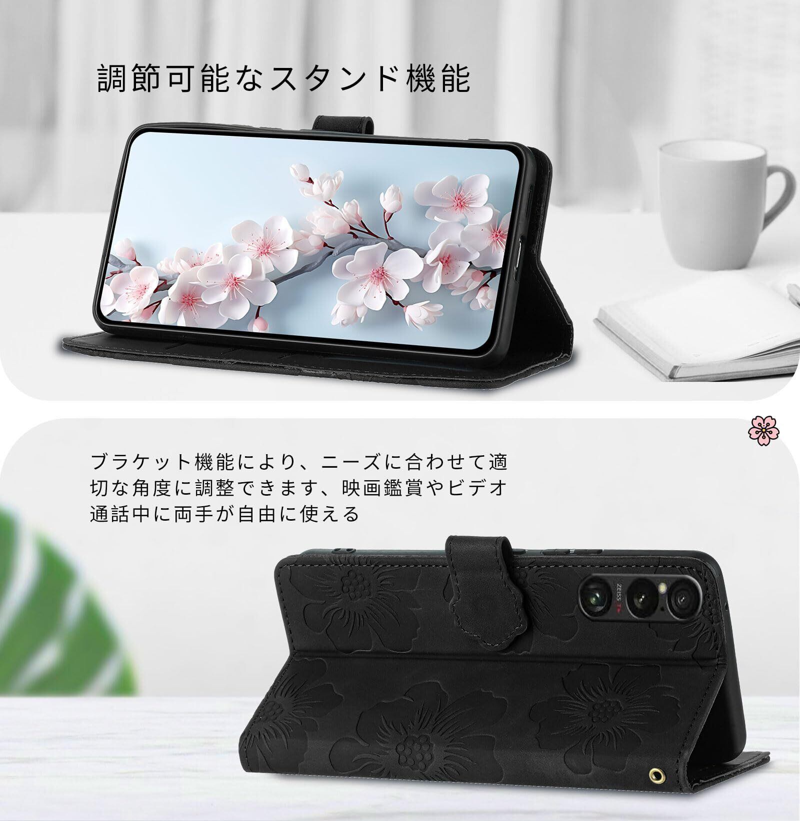 Xperia 1 VI カバー Xperia 1 VI ケース 手帳型 エクスペリア1 VI ケース 財布型 美しい桜の柄 So-51e/Sog13ケース 高級PUレザー 全面保護 Xperia 1 6 ケース 耐衝撃 カード収納 スタンド機能 Xperia 1 VI 手帳カバー 花柄 マグネット開閉式 (リストストラップ付き)【 ブラック】 | BASE SHOP