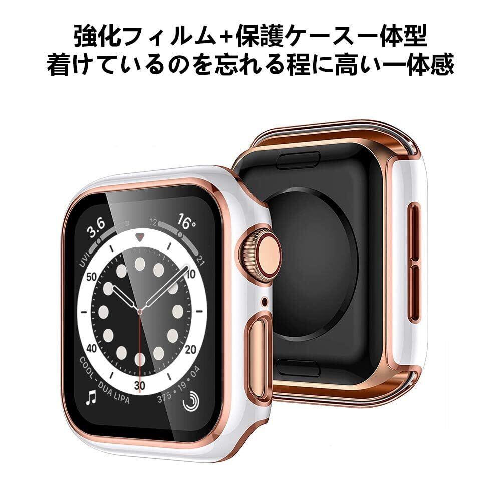 BELIYO Apple Watch ケース 45mm 対応 アップルウォッチ カバー 二色 一体型 メッキ加工 Apple Watch カバー 全面保護 二重構造 アップルウォッチ ケース PC素材 日本旭硝子材 キズ防止 軽量 強化ガラス Apple Watch Series 9/8/7 アップルウォッチ9/8/7 対応(45mm,ホワイト+ローズゴールド)