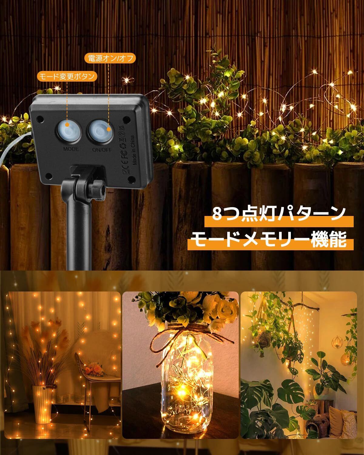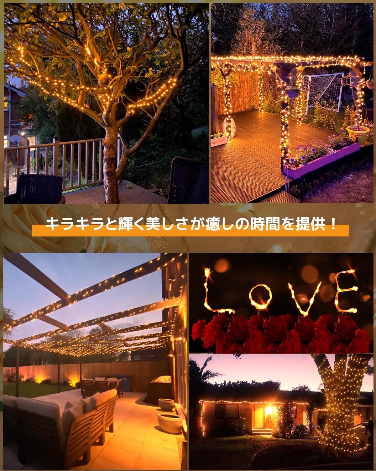 Dalugo イルミネーションライト ソーラー LED ストリングライト 屋外 防水 10M 100LED イルミネーション クリスマス 電飾LED ソーラーライト アウトドア 室内 フェアリーライト おしゃれ 8点灯モード 夜間自動点灯 長い点灯時間 ガーランドライト 庭木 キャンプ LEDイルミネーション クリスマス ハロウィン LED飾りライト(ウォームホワイト) | BASE SHOP