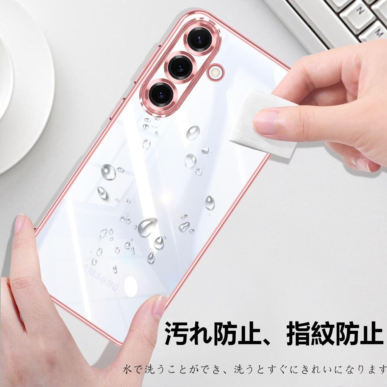 Samsung Galaxy S25 ケース クリア SC-51F SCG31 カバー ギャラクシーS25 透明 スマホケース 耐衝撃 軽量 メッキ加工 TPU 薄型 ストラップホール付き 滑り止め 落下防止(ローズゴールド)