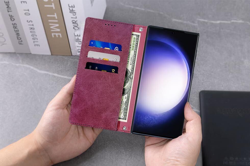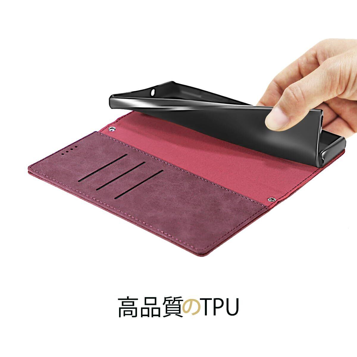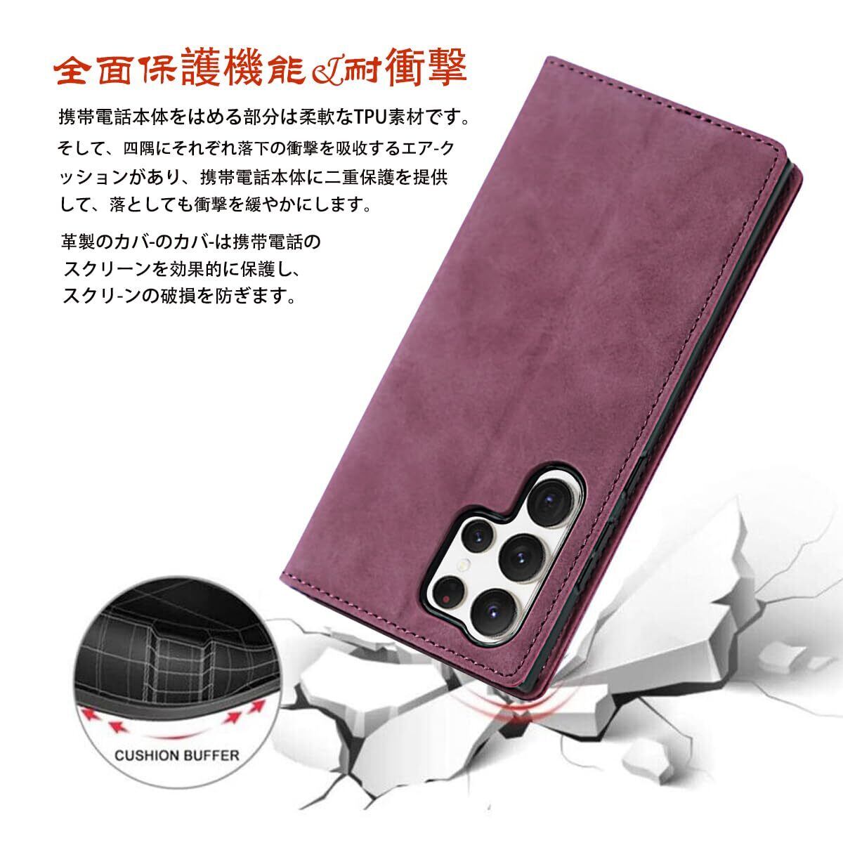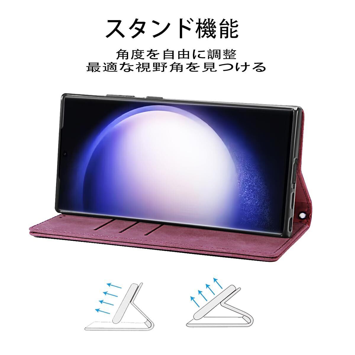 NanHou Samsung Galaxy S23 Ultra ケース 手帳型 つや消し レザー スタイル質感 SCG20 カバー 手帳型 耐衝撃 保護カバー 内蔵マグネット SC-52D 財布型 携帯カバー カードポケット スタンド機能 リストバンド Samsung S23 Ultra ケース - ダークレッド | BASE SHOP