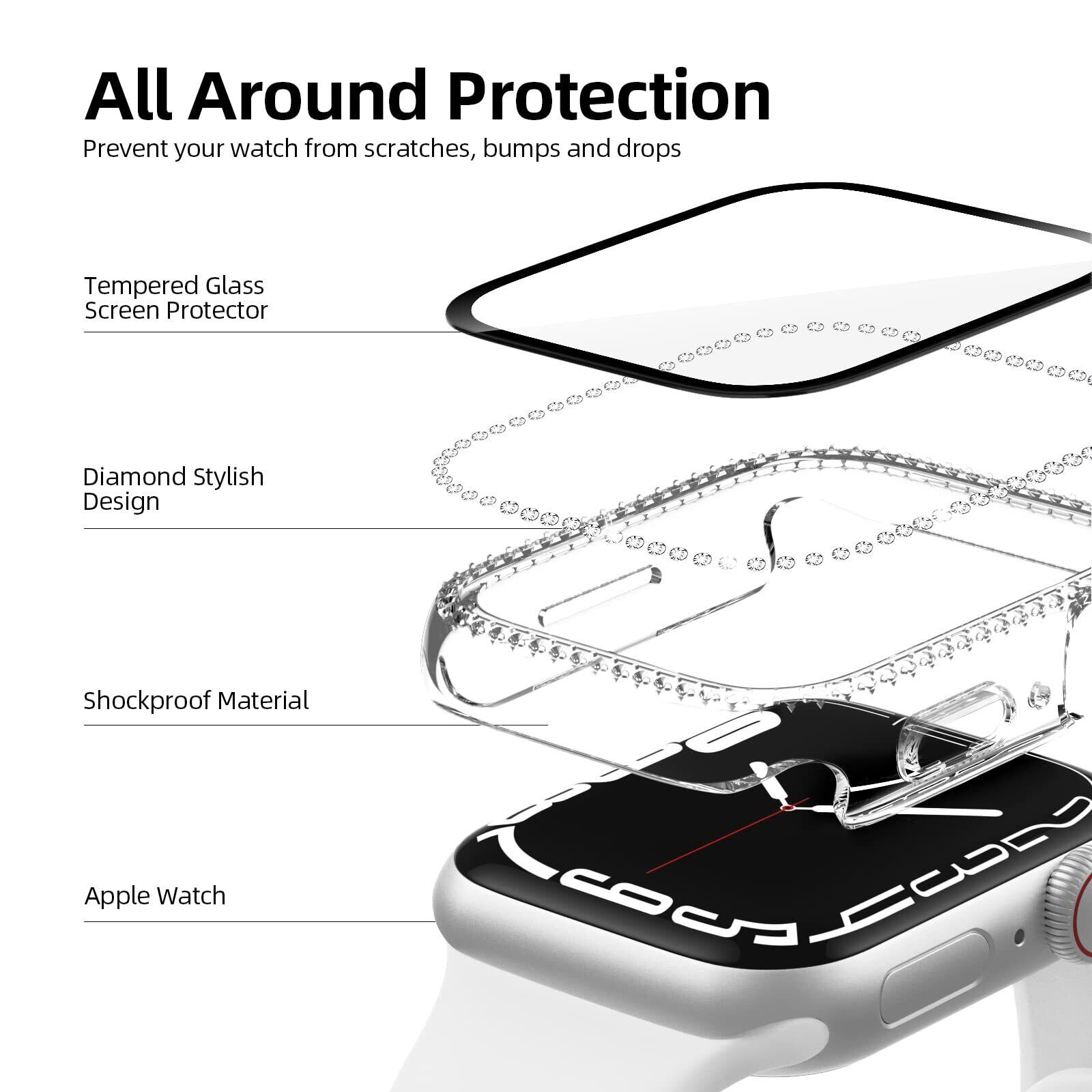 Adepoy コンパチブル Apple Watch ケース 44mm iWatchケース キラキラ 保護フィルム付き クリスタルダイヤ付き アップルウォッチカバー 女性専用 全面保護ケース(44mm Series SE/6/5/4 クリア)