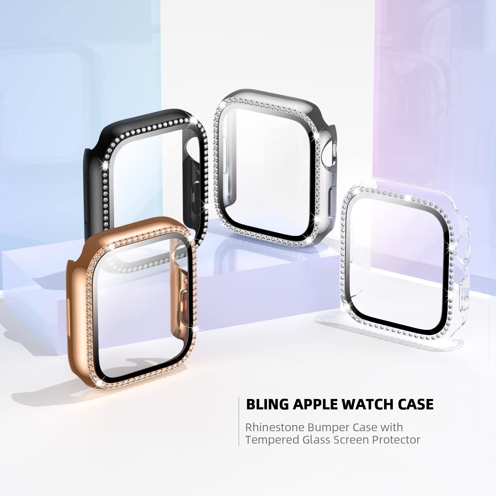 Adepoy コンパチブル Apple Watch ケース 44mm iWatchケース キラキラ 保護フィルム付き クリスタルダイヤ付き アップルウォッチカバー 女性専用 全面保護ケース(44mm Series SE/6/5/4 クリア) | BASE SHOP