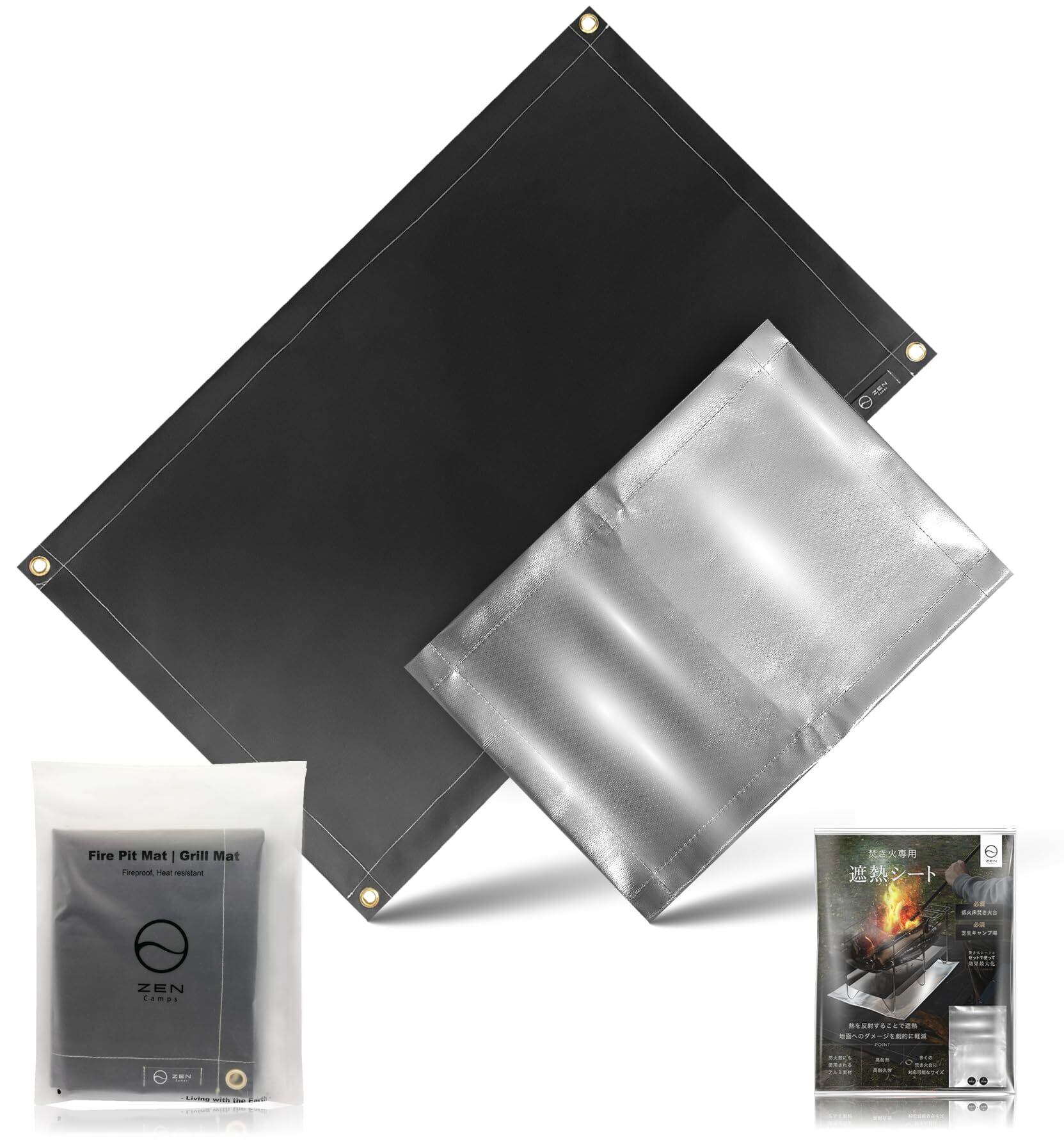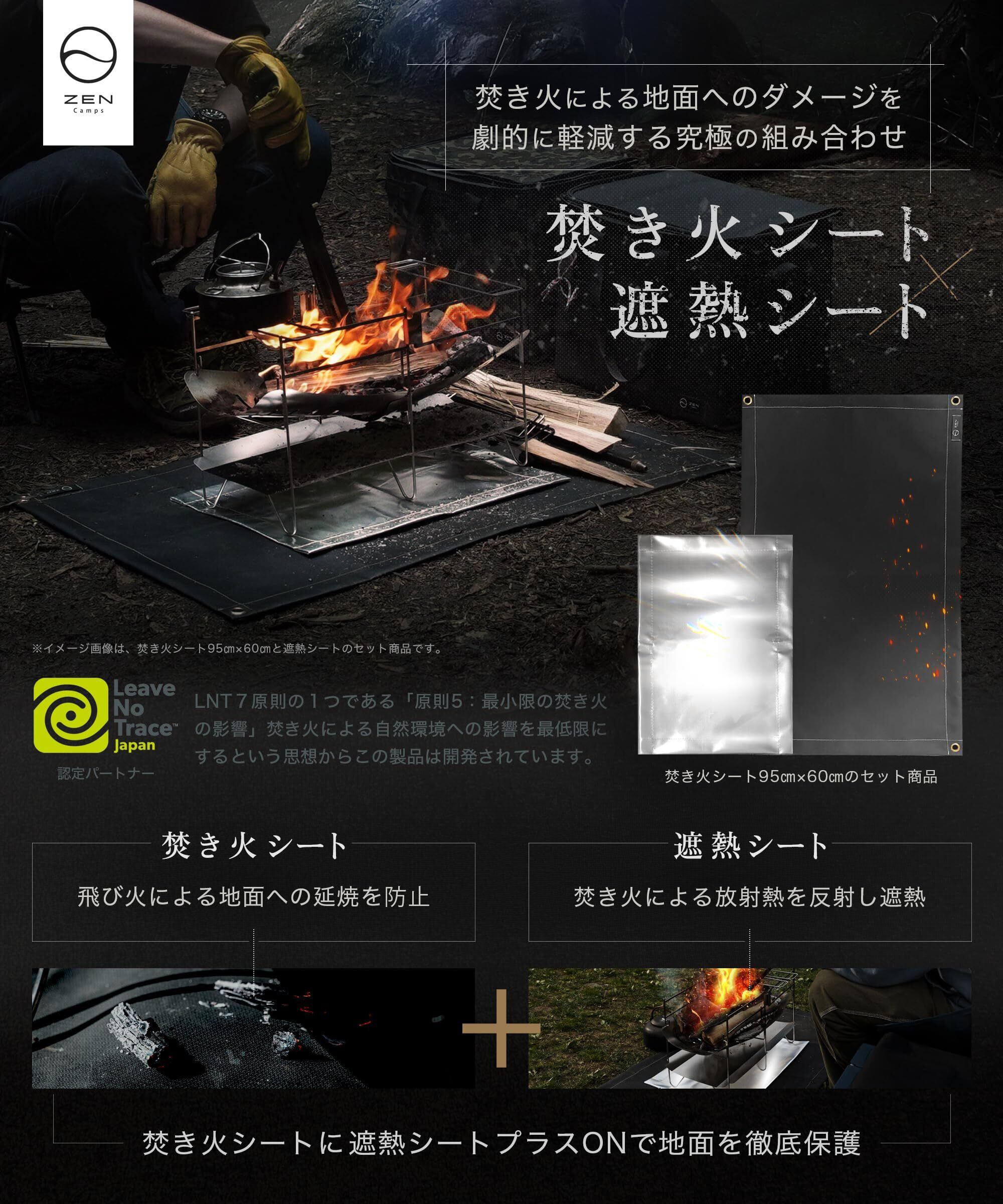ZEN Camps 焚き火シート スパッタシート 焚き火台シート チクチクしない シリコン ブラック 黒 耐火 耐熱 防炎 防火 シート キャンプ 芝生保護【日本ブランド】