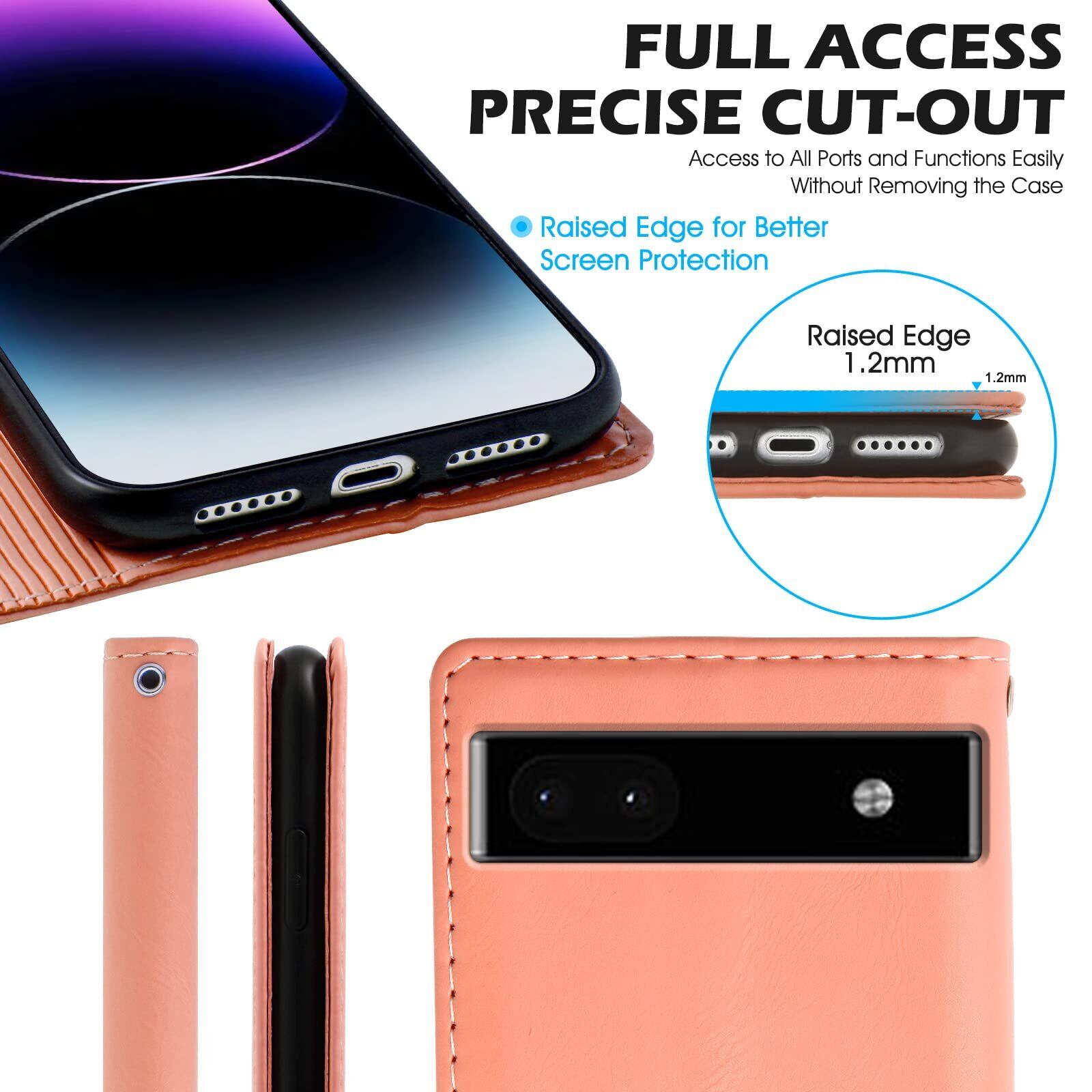 Kedic Google Pixel 6a ケース 手帳型 ピクセル 6a ケース 可愛い笑顔の猫模様 手作り携帯カバー Pixel6a カバー グーグル ピクセル6a ケース おしゃれ カード入れ 財布型 と横方向のスタンドが 多機能 ぐーぐるぴくせる6a 手帳型カバー 内蔵マグネット式 純色シンプルデザイン Pixel6a ケース ピンク