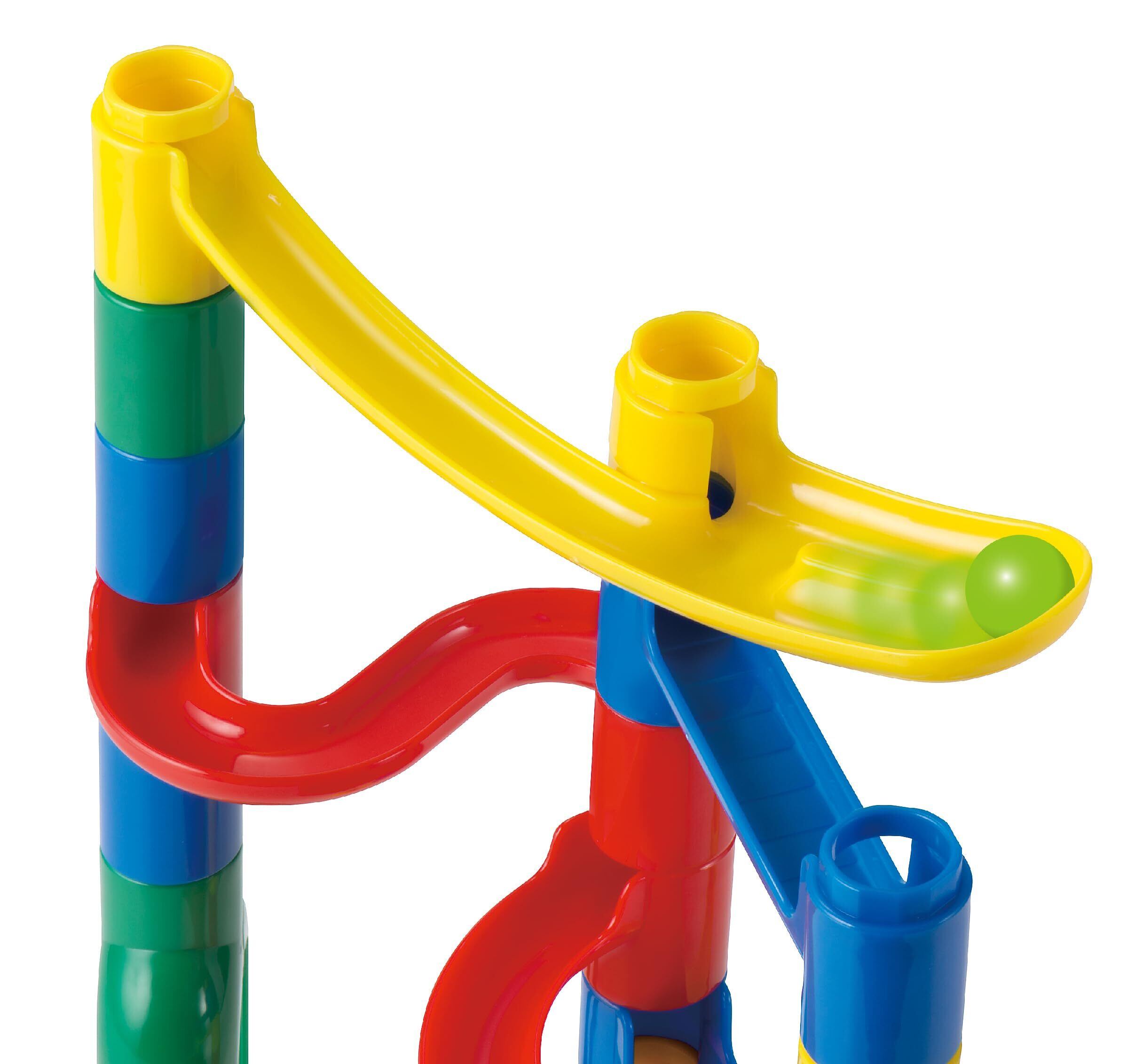いろいろなパーツを使って、ボールが転がるコースを考えるおもちゃです。
