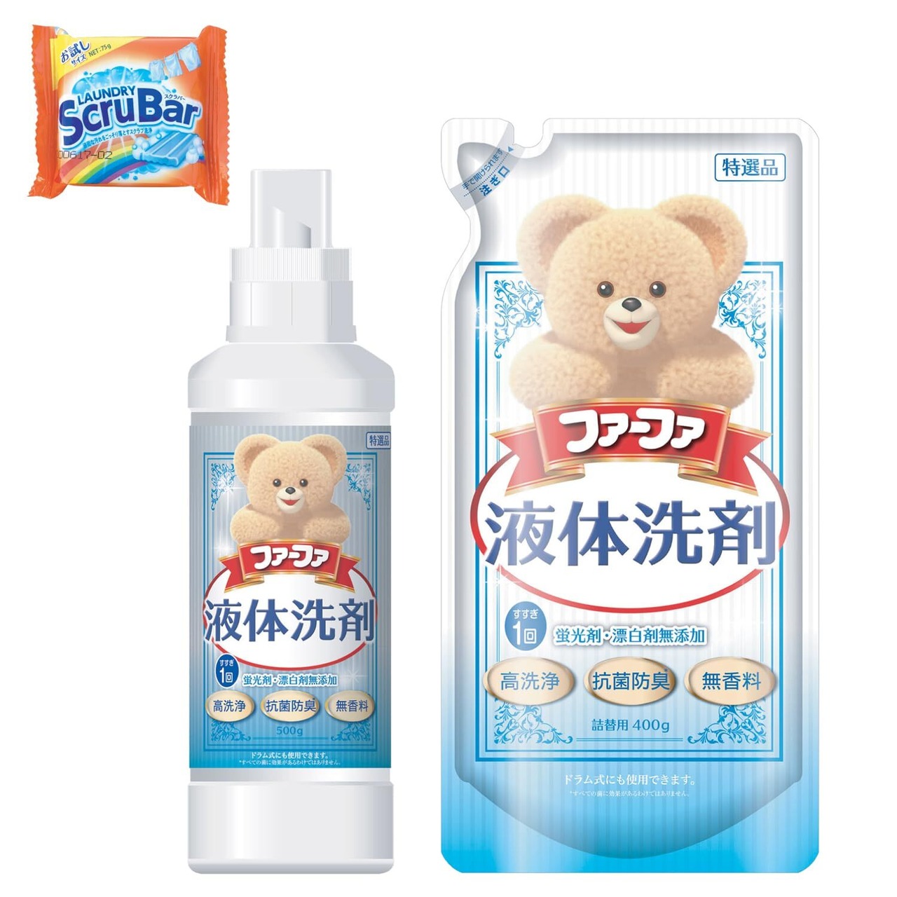 ファーファ 洗濯用 液体 洗剤 香り ひきたつ 無香料 本体 (500g) 1個 + 詰替 (400g) 1個 セット 固形 洗剤 ランドリースクラバー (お試し 75g) 付き | BASE SHOP
