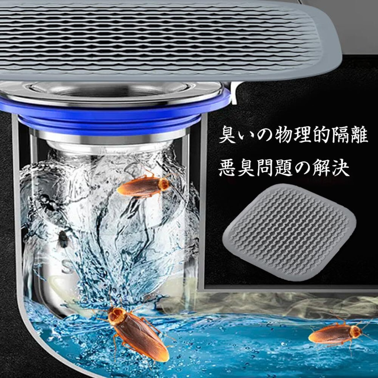 [使用範囲]: 浴槽、台所の流し、浴室の下水管、洗面器、等で広く利用された、効果的に水路の臭気、ゴキブリをカバーするが、また排水管を詰まらせる残骸を防ぐために下水管を妨げて下さい