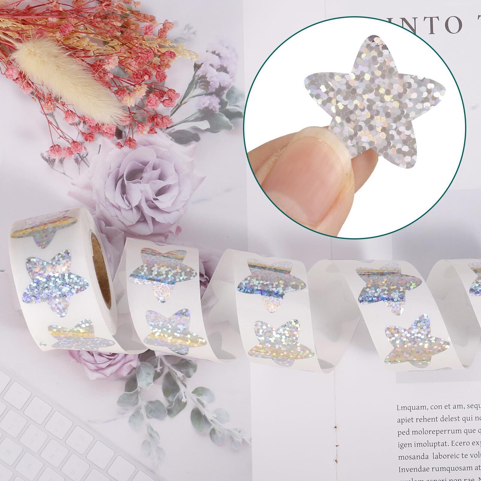 Hitchlike シール 星 約1000枚入り きらきら ごほうびシール 大量 カラフル 可愛い ステッカー ホログラムロールシール 手帳 飾り 日記デコレーション DIY