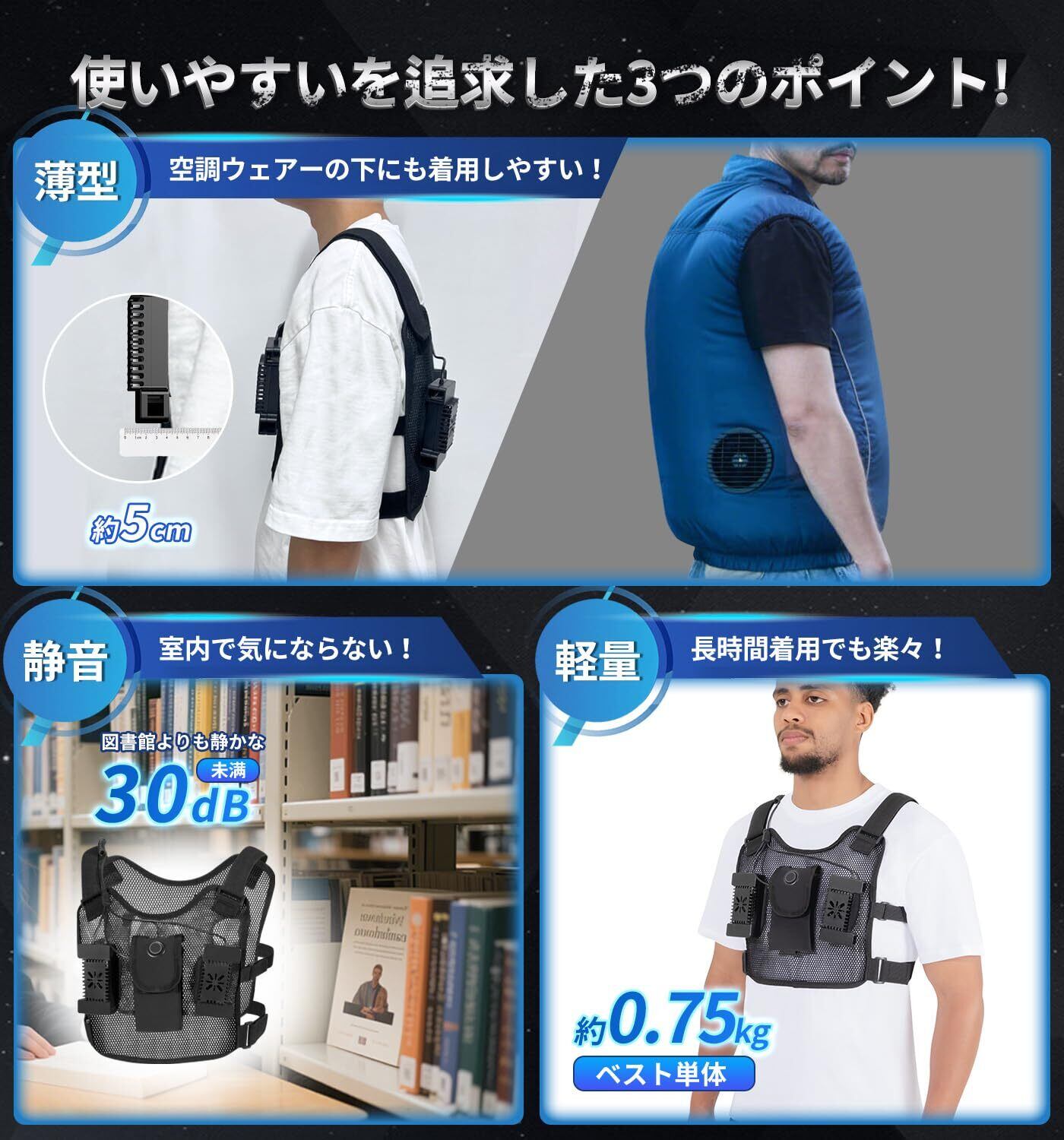 ペルチェ ベスト 冷却ブレート付き 4つ【2025業界初登場&ペルチェ素子搭載&30000mAh大容量】 冷却ベスト バッテリーセット USB給電式 強弱モード 最大-28℃冷やす 空調冷却服 薄型&コンパクト フリーサイズ 静音稼働 ワークマン 冷感インナー 空調ウェアと併用可 水冷服 現場 外仕事 | BASE SHOP