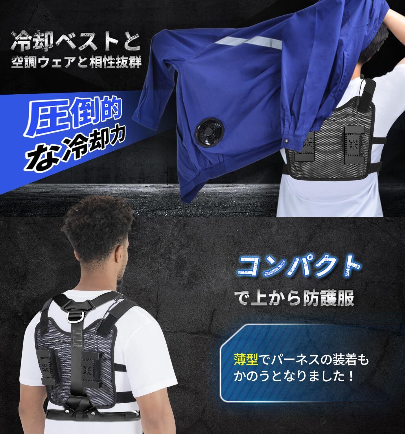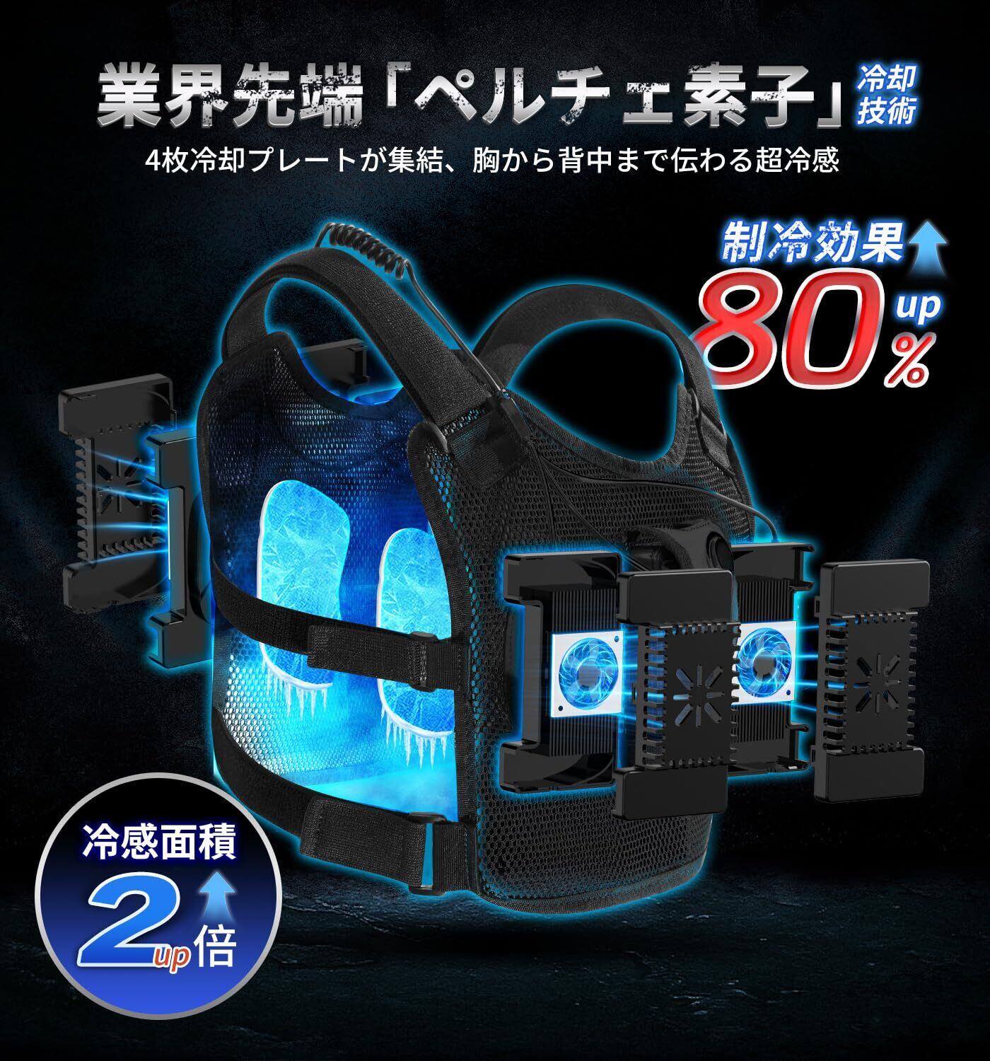 【2025夏業界最強冷却&4つ冷却プレート搭載&ペルチェ素子 冷却ベスト】業界先端半導体冷却システム搭載し、従来の小型冷却器から大面積の前後4つ冷却プレートを進化されました!ワンボタン簡単操作で、冷たい缶ジュースを背中に当てたよう、瞬間冷却で超爽快!1秒で肌に冷たさを伝え、体感温度が最大マイナス28℃ーーまさに日本初の最強「ペルチェ ベスト」!!暑さと戦うあなたに、ぜひお使いいただきたいこの夏新作。現場仕事をはじめ、室内でも暑さから免れない調理場や工場作業の方々にも最適です。1日中冷たいからこそ自信を持っておすすめ致します!