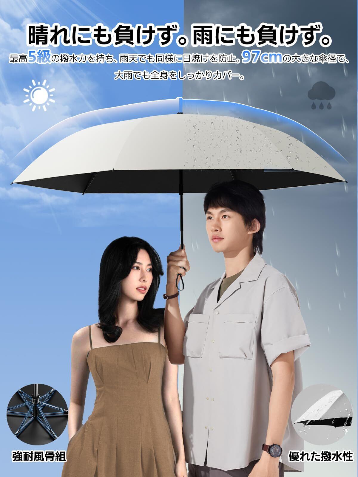 【一歩先行く!最涼の日傘・暑さ対策】紫外線対策だけではなく、年々厳しくなる猛暑にも対応する必要があります。Alwgreenの折畳み日傘は、業界最先端のUV0紫外線カット性能を誇りながら、冷感機能も兼ね備えています。「涼しい木陰」のような心地よさ!このAlwgreen自動開閉日傘はドイツから輸入した特許技術のアイスシルク素材を採用しており、開くとすぐに気温が20度感じられるほど冷やします。一般的な黒や銀のコーティングされた傘と比べても、涼しさが格別です。開けば、最高40℃の暑さもたちまち20℃まで急冷!外出や通勤中のシャツが汗で濡れる問題を解決するだけでなく、熱中症対策にも最適な解決策です!