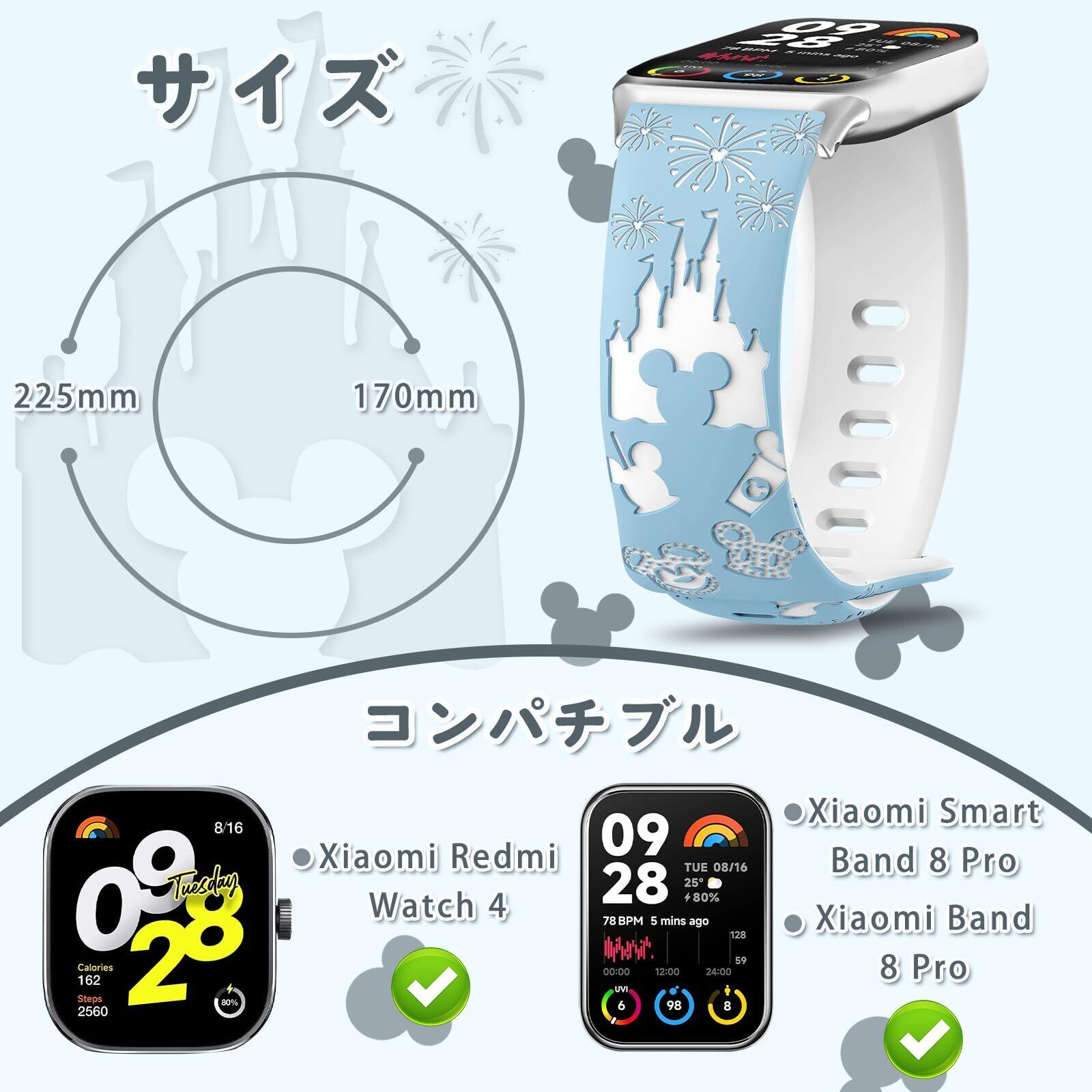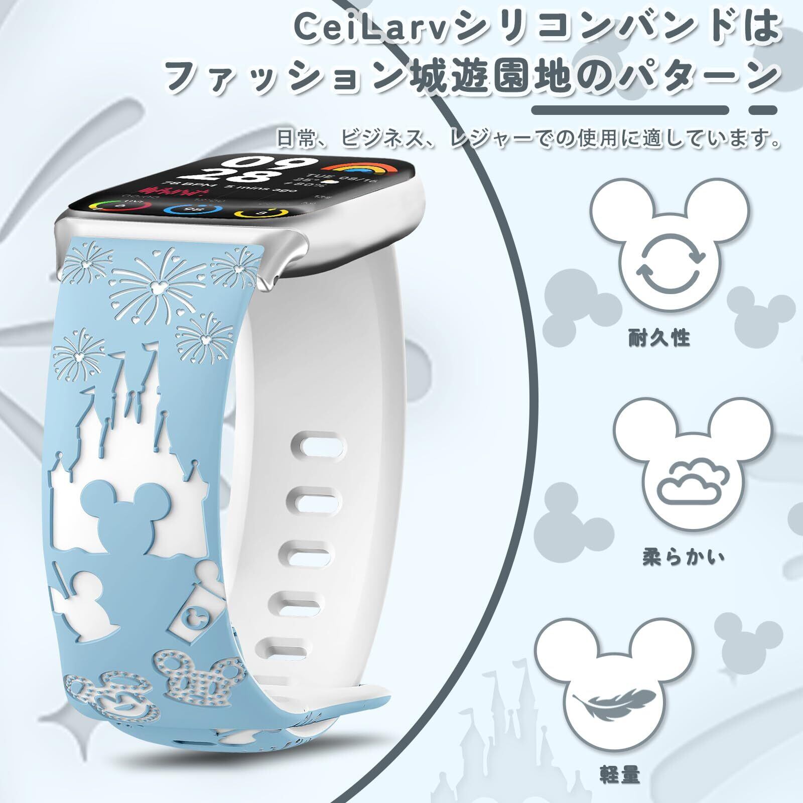 【最新の彫刻技術】最新のレーザー彫刻技術を使用し、シンデレラ城の夜景がバンドに描かれています。シンデレラ城と花火が彩るファンタジーのXiaomi Watchバンドは、おしゃれなデザインでスタイリッシュな装いを引き立て、優雅な女性の魅力を演出します。身につけることでユニークな世界観を感じ、夢と魔法の世界が手首に広がります。この楽しい彫刻時計を手に入れて、夢のような生活を始めましょう!