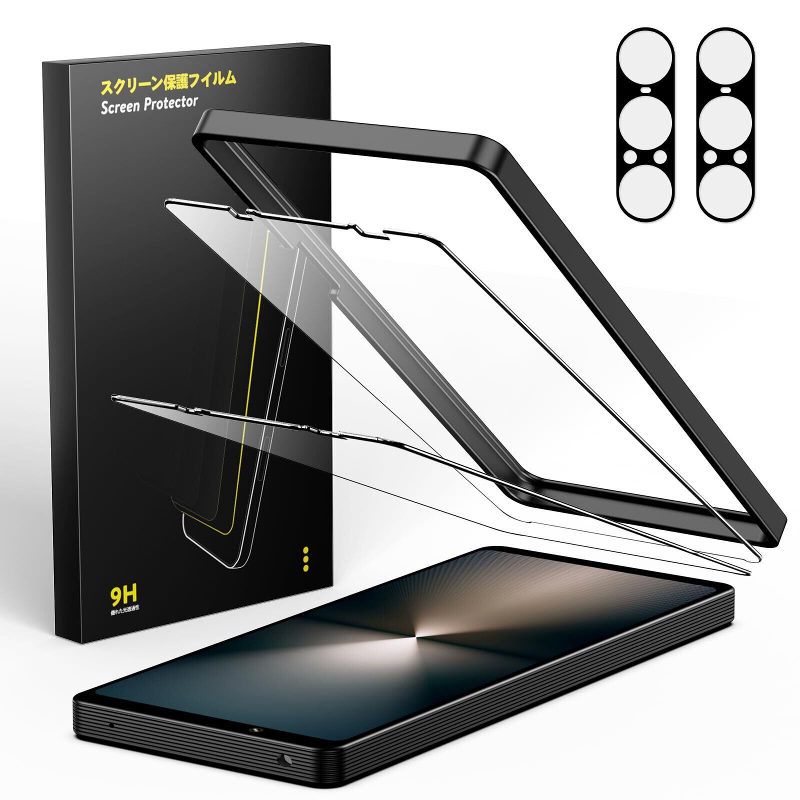 【バッケージ内容】Xperia 1 VIIに対応。セット内容:ガラスフィルム*2+レンズフィルム*2+ガイド枠*1。