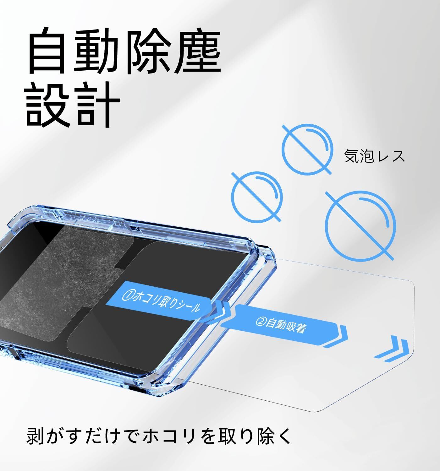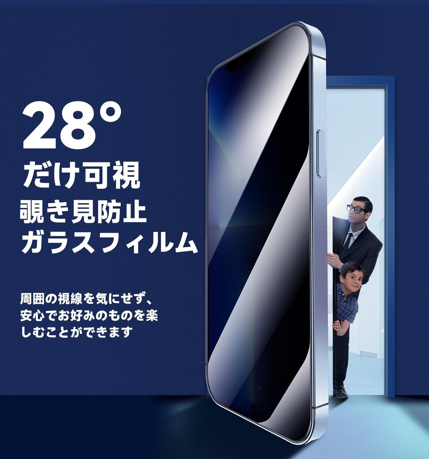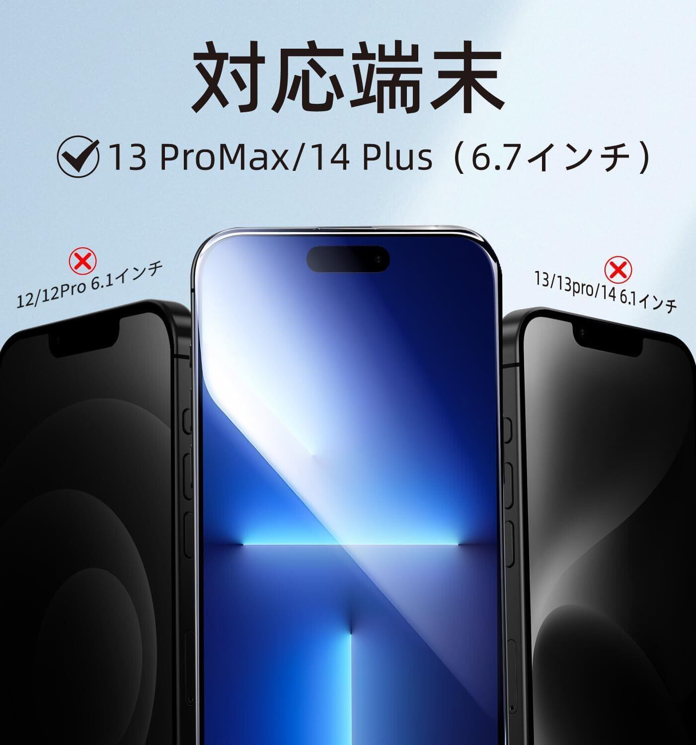 【もう失敗はしない】本製品はiPhone13 Pro Max/14 Plusに対応するプライバシーフィルム2枚セットです。百万以上の欧米ユーザーのフィドバックを集めて日々改善したガイド枠は、3歩だけで保護フィルムを貼り付けます。そのうえ、自動ホコリ取りデザインだけでなく、ガイド枠のスロープデザインで、空気を順序に取り除くことができて、初心者でも気泡レスのまま綺麗に貼れます。