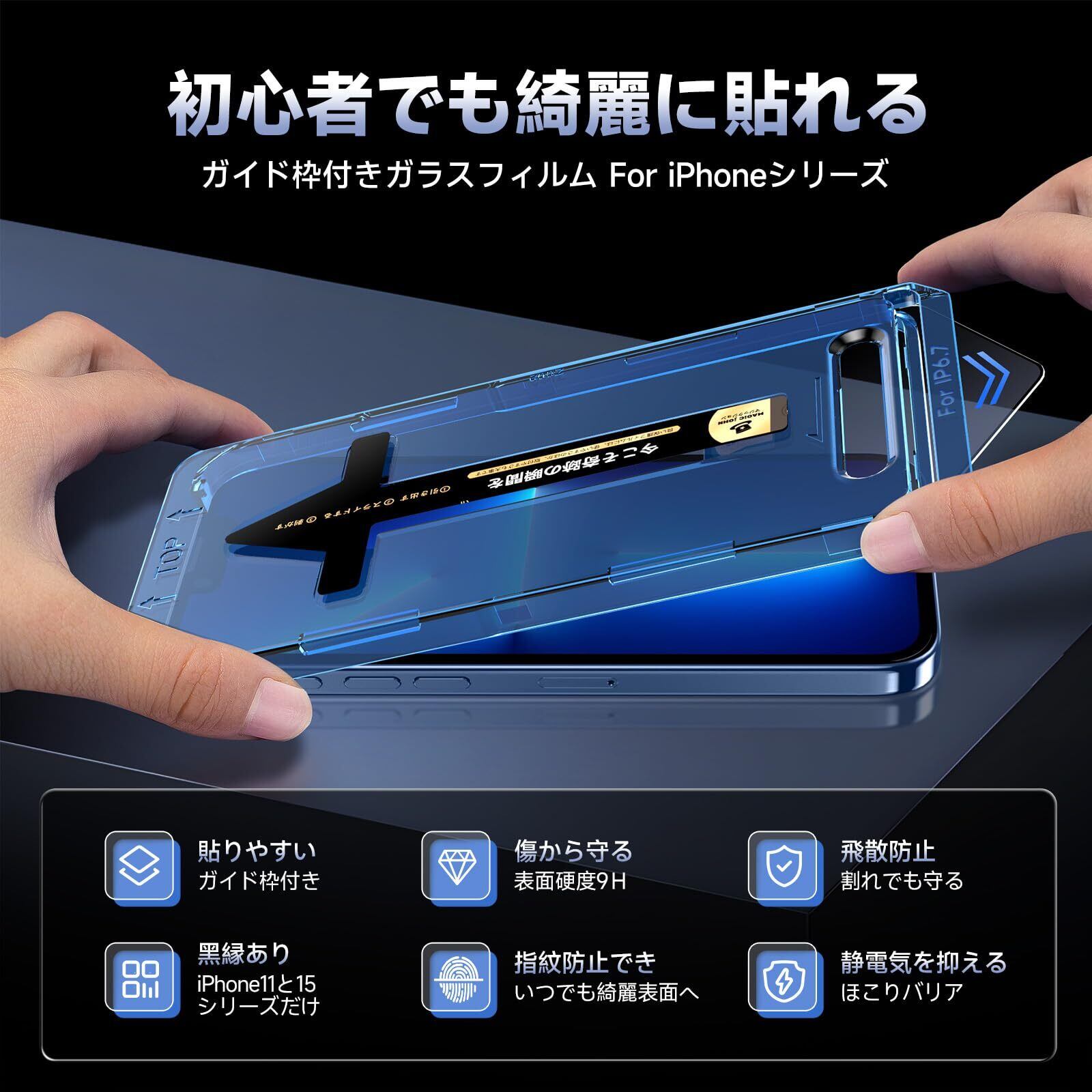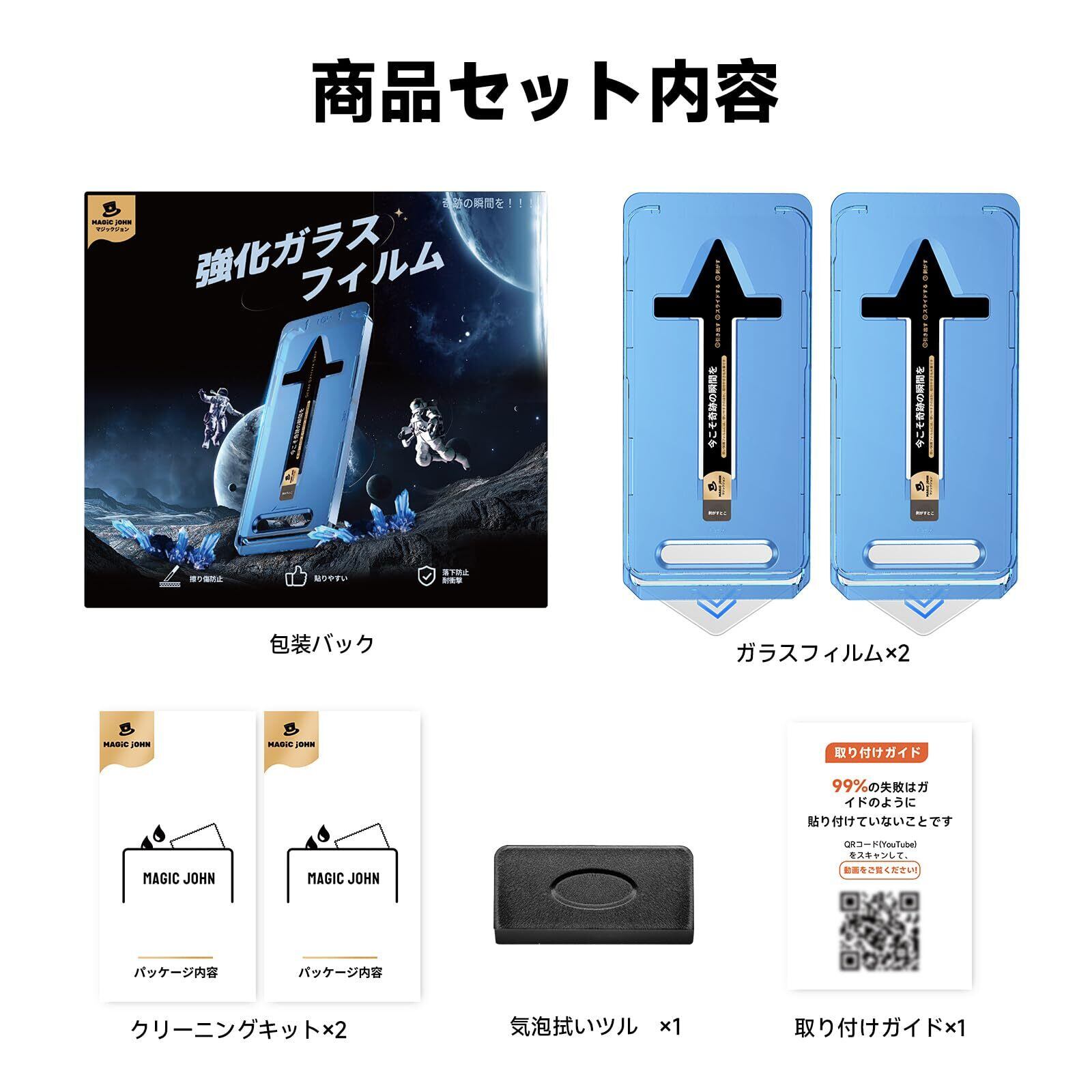 【覗き見防止】MAGIC JOHN iPhone 14 Plus/iPhone 13 Pro Max 用 ガラスフィルム 2枚セット ガイド枠一体式 貼りやすい 気泡レス 9H硬度 強化ガラス | BASE SHOP