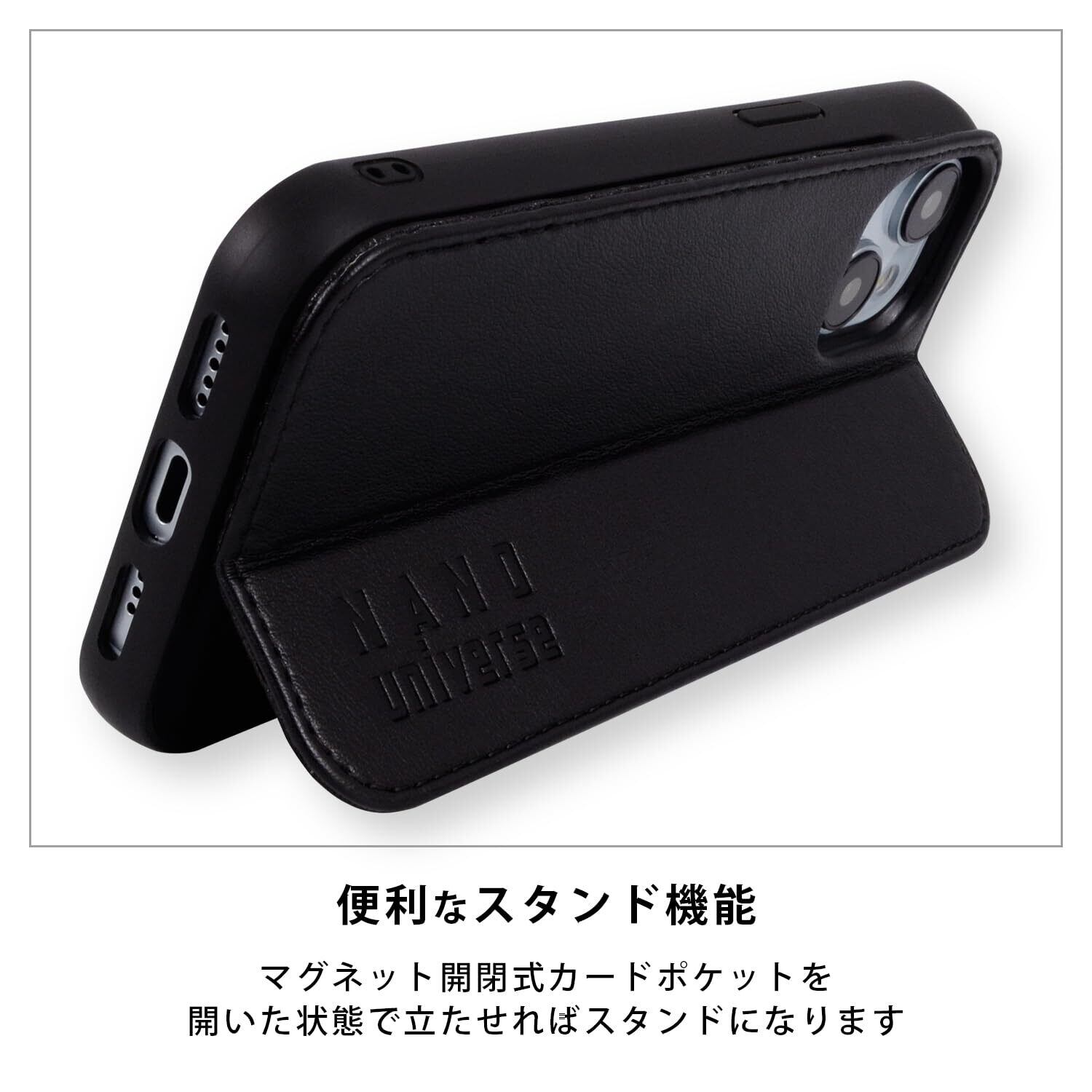 【 nano・universe 正規品 】 iPhone15 対応 ケース カード収納 スタンド付き iPhone14/13兼用 「 レザー調スタンドケース 」 ナノユニバース アイフォン15用 アイフォン14 13兼用 iPhone 15用 ブランド スマホケース (ブラック)