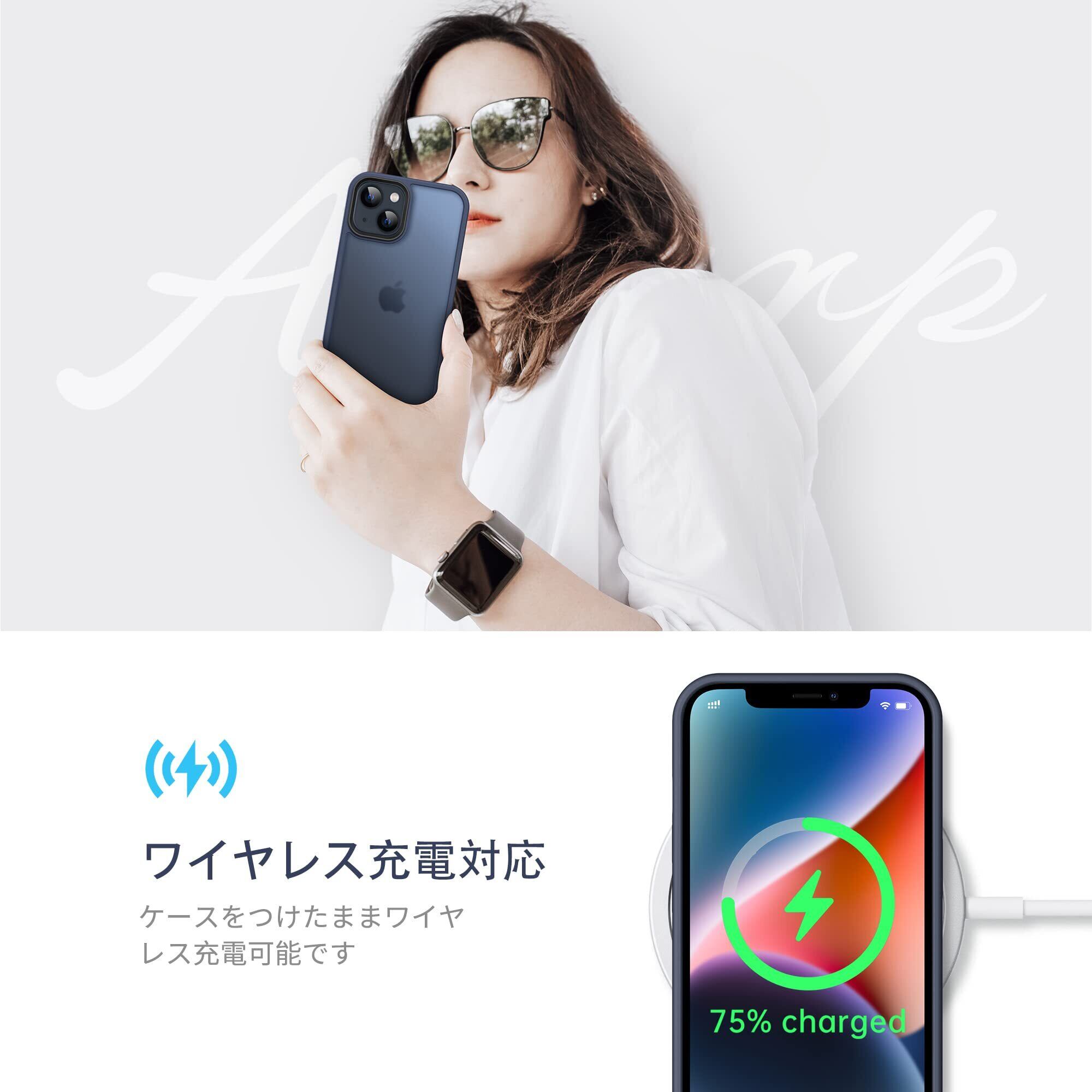 Anqrp iPhone 14 Plus 用 ケース 半透明 耐衝撃 滑り止め 米軍MIL規格 指紋防止 マットケース ストラップホール付き ワイヤレス充電対応 スマホケース アイフォン 14 Plus カバー 6.7インチ ブルー | BASE SHOP
