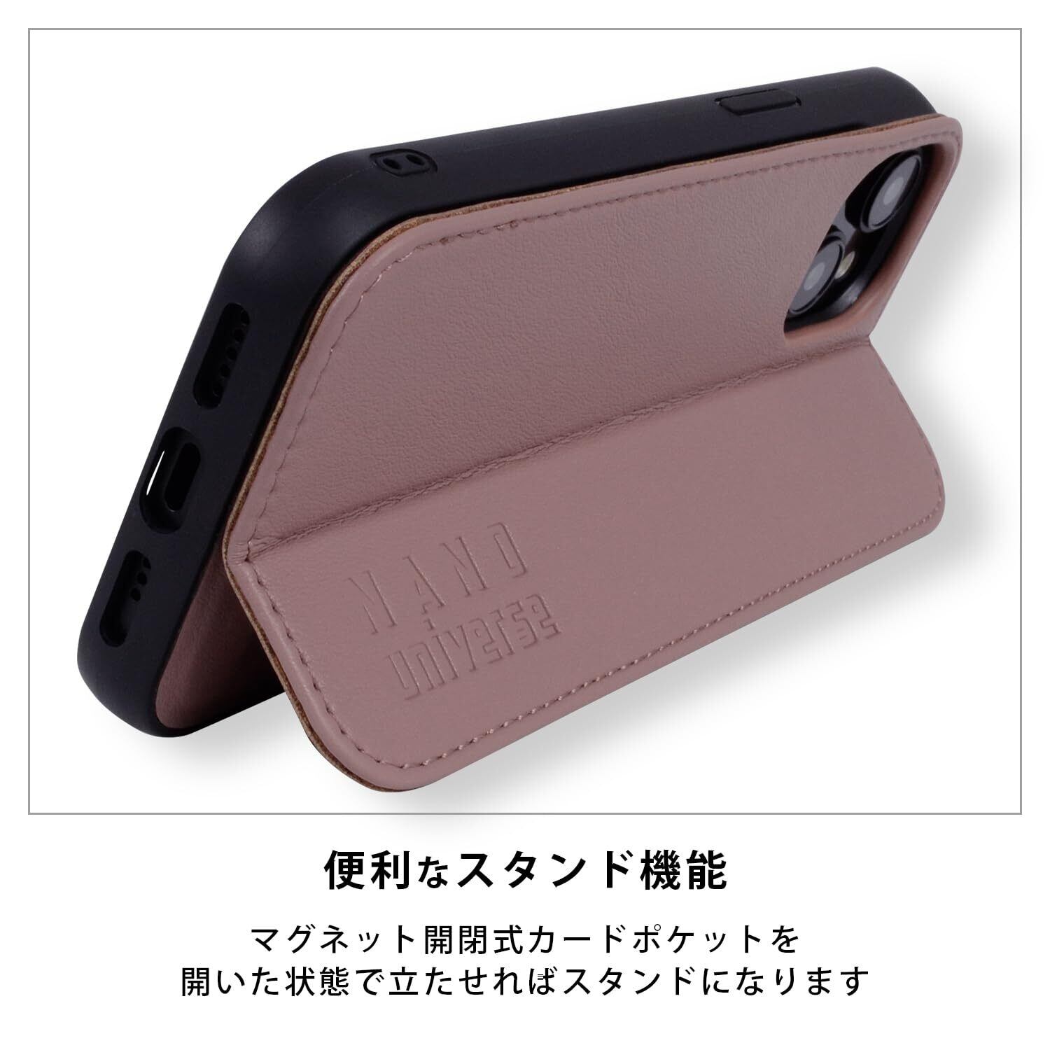 【 nano・universe 正規品 】 iPhone15 対応 ケース カード収納 スタンド付き iPhone14/13兼用 「 レザー調スタンドケース 」 ナノユニバース アイフォン15用 アイフォン14 13兼用 iPhone 15用 ブランド スマホケース (ココア)