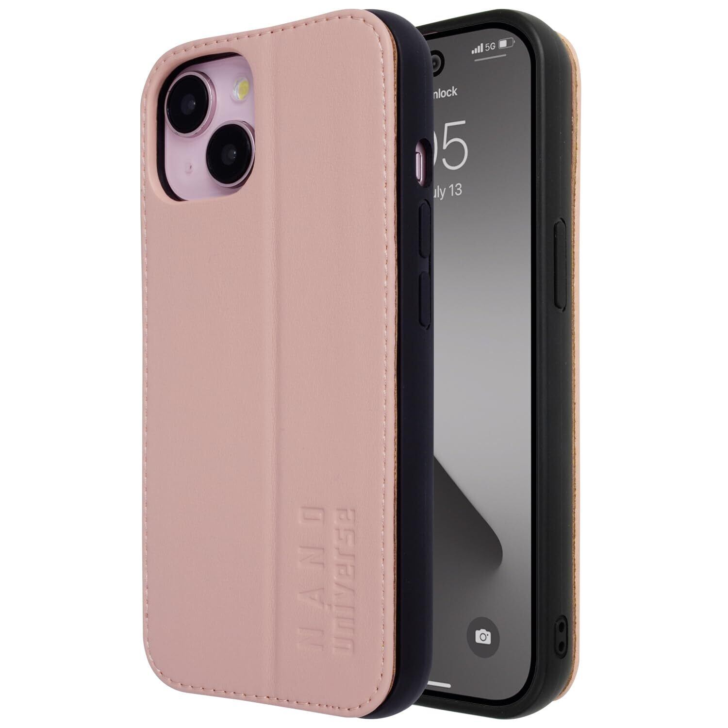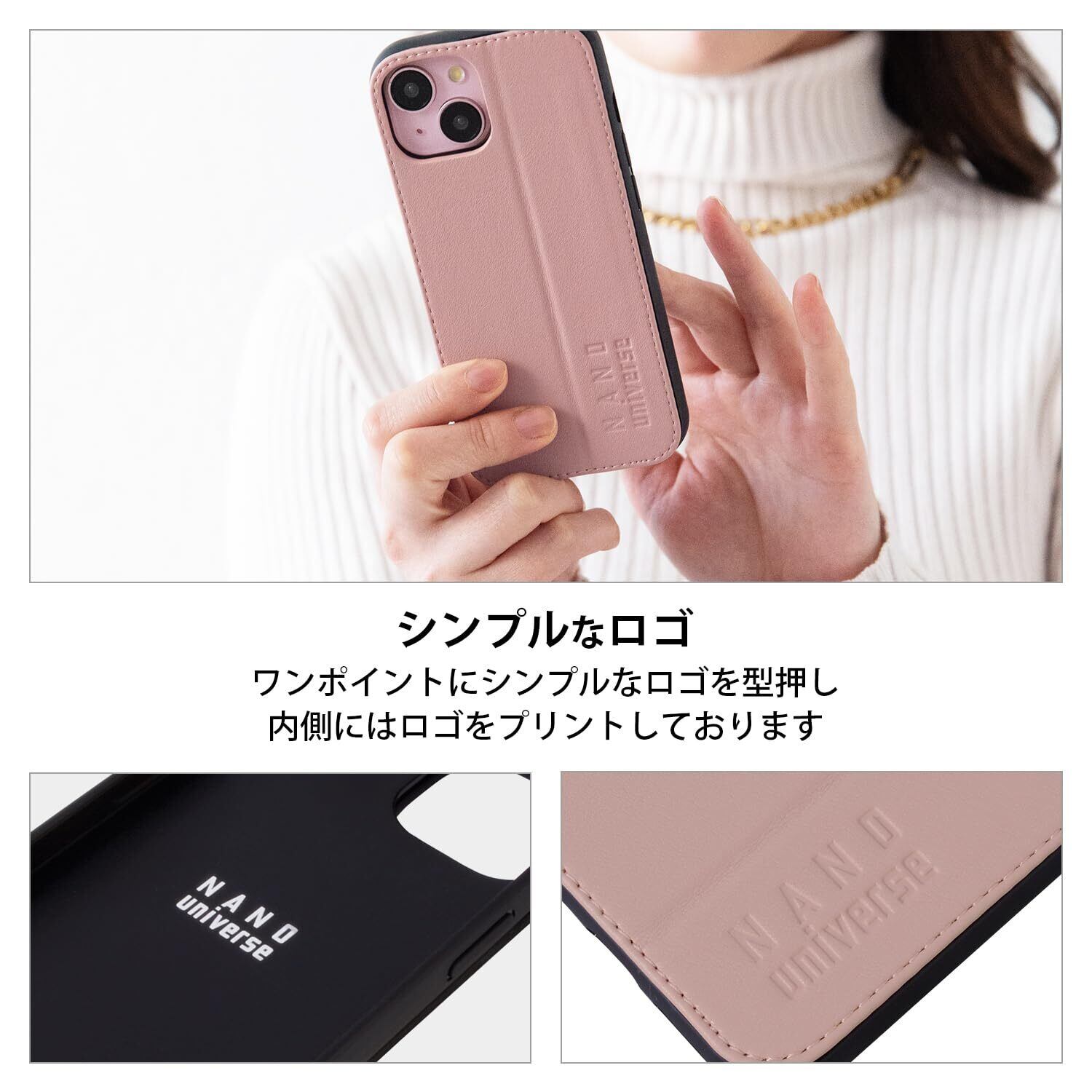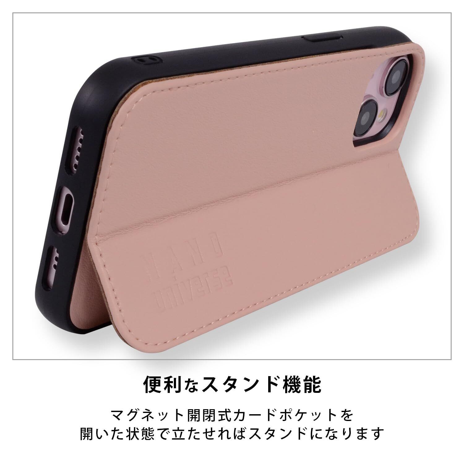 【 nano・universe 正規品 】 iPhone15 対応 ケース カード収納 スタンド付き iPhone14/13兼用 「 レザー調スタンドケース 」 ナノユニバース アイフォン15用 アイフォン14 13兼用 iPhone 15用 ブランド スマホケース (コーラルピンク)