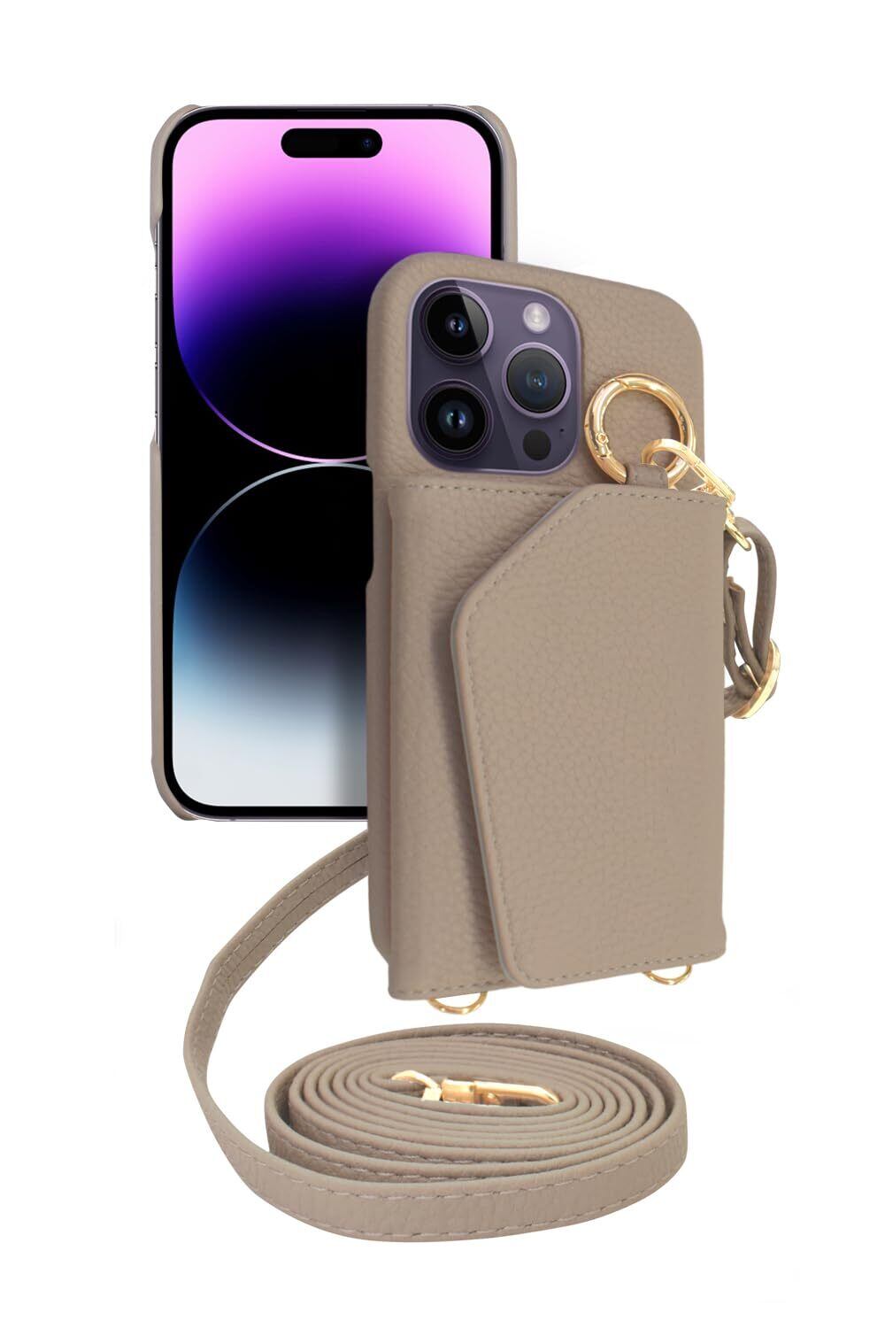 シズカウィル iPhone 14 Pro 用 ケース ショルダー カバー ショルダーストラップ アイファンデ5 ショルディー ドレスコード 1個入り サンドベージュ