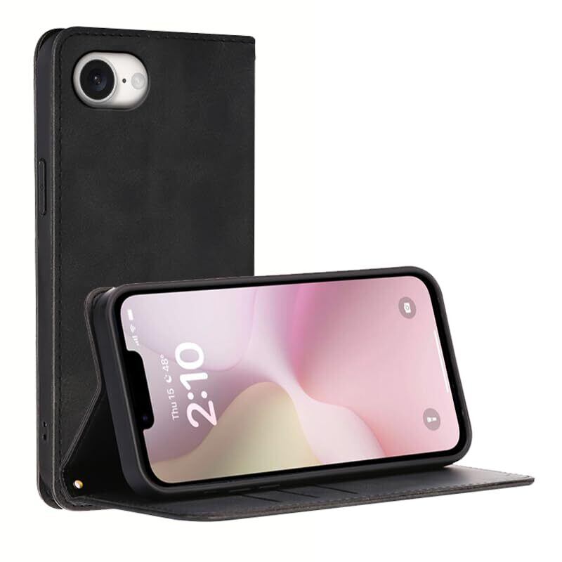 適用 iPhone 16E ケース 手帳型 手帳型ケース 適用 いPhone 16e スマホケース カバー 手帳型 PUレザー カード収納 財布型 耐衝撃 ケース マグネット スタンド機能付き 5色(適用 iPhone16E ケース手帳型) (ブラック)