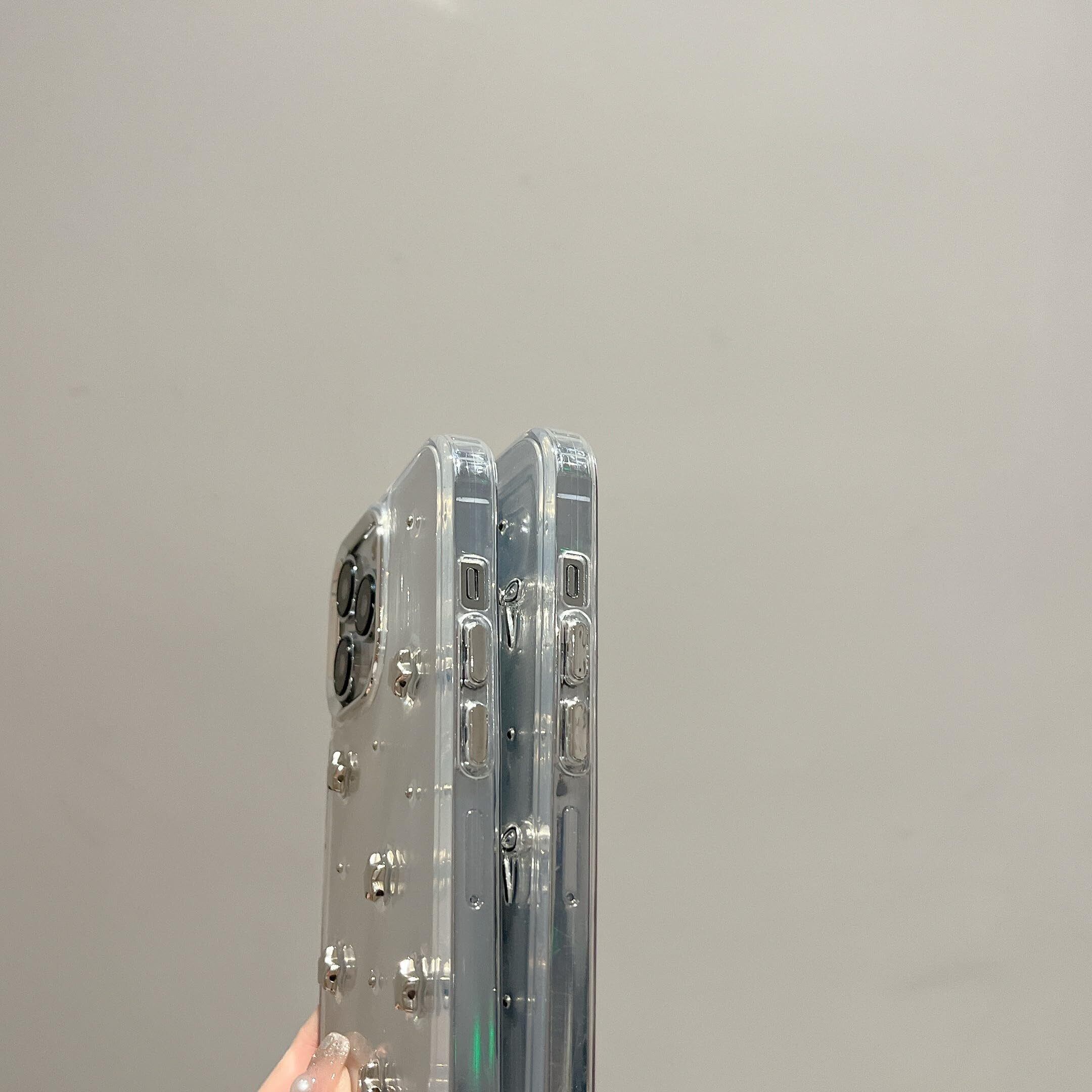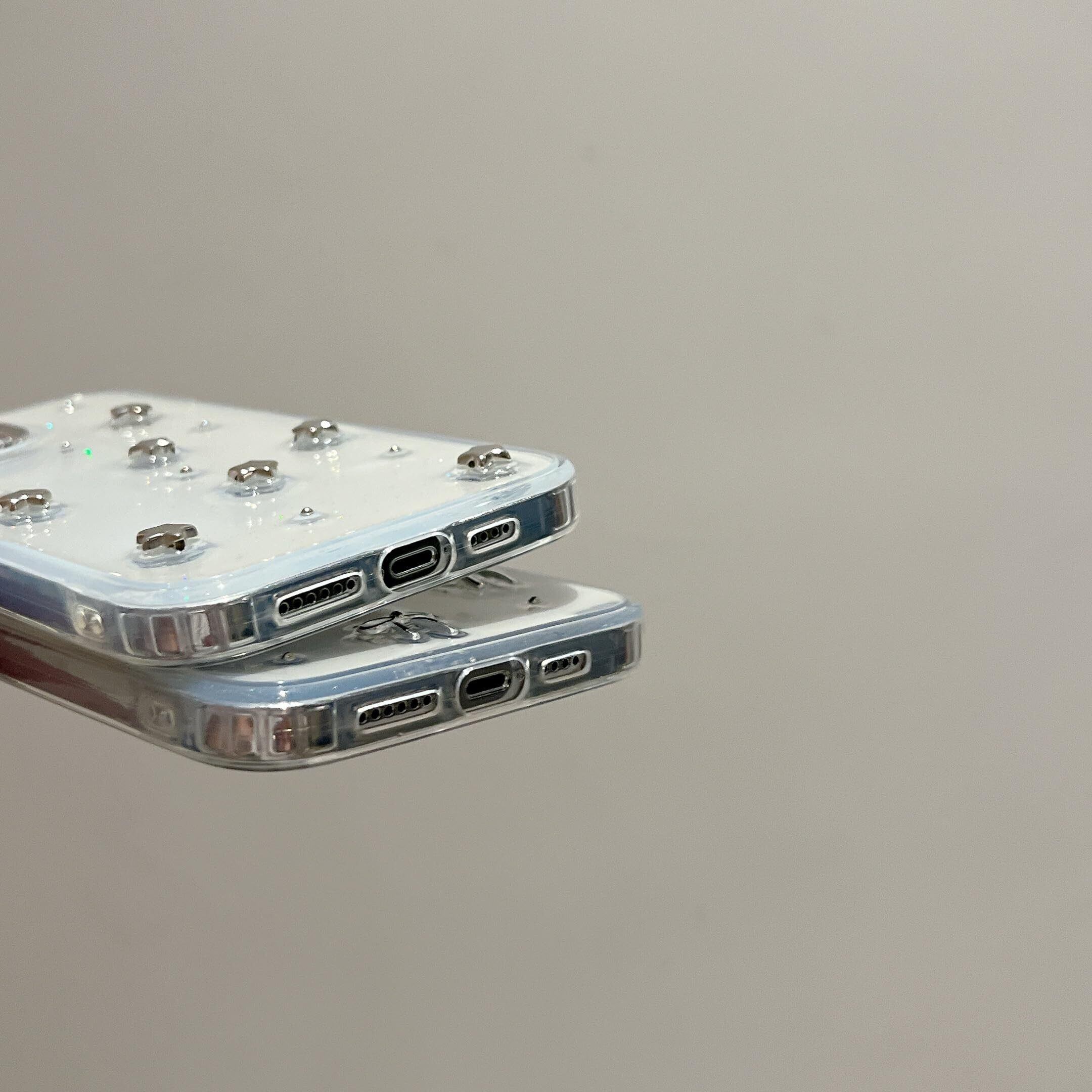 QLTYPRI iPhone15 ケース クリア シルバー ミニリボン おしゃれ 韓国 iPhone15ケース 透明 可愛い 耐衝撃 スマホケース 立体 りぼん装飾 きらきら アイフォン15 ケース、シルバー | BASE SHOP