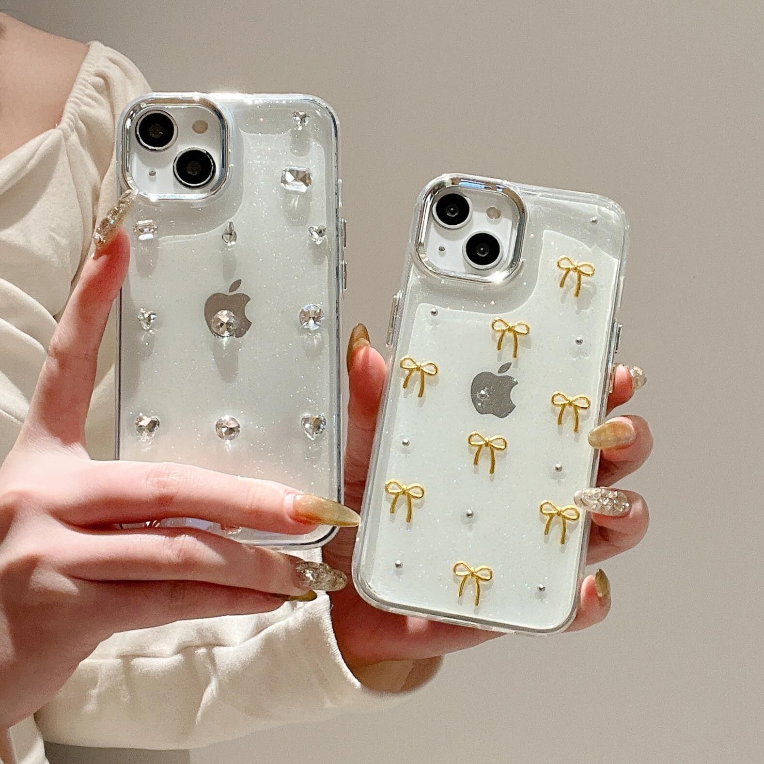 QLTYPRI iPhone15 ケース クリア ゴールド ミニリボン おしゃれ 韓国 iPhone15ケース 透明 可愛い 耐衝撃 スマホケース 立体 りぼん装飾 きらきら アイフォン15 ケース、ゴールド | BASE SHOP