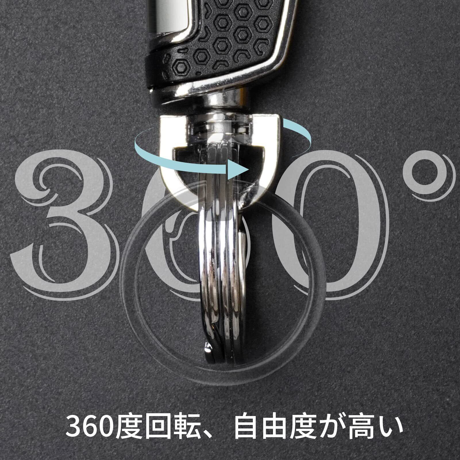 【良質なデザインで使いやすい】使いやすくなるよう考え抜かれたボタン設計により、爪の傷が気になる方はボタン操作で押して開けることができます。もちろんフックの閉じた部分を押して開けることもできます。360度回転するので使用時の自由度が高く使いやすくなっています。