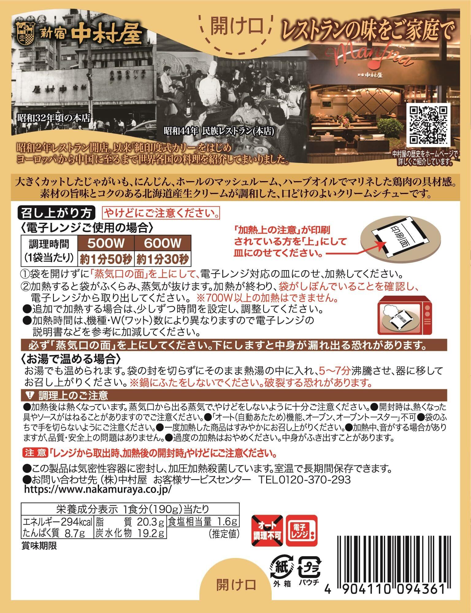 新宿中村屋 中村屋 濃厚クリームシチュー贅沢生クリーム仕立て 190g ×5個 レンジ調理可