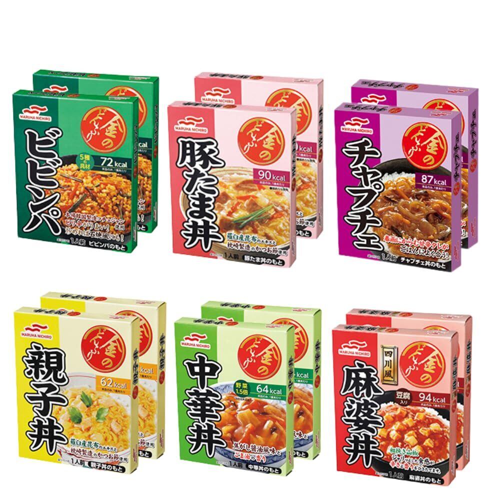 【12個セット】金のどんぶり 6種類アソートセット (親子丼/麻婆丼/チャプチェ/ビビンパ/豚たま丼/中華丼) 各2個