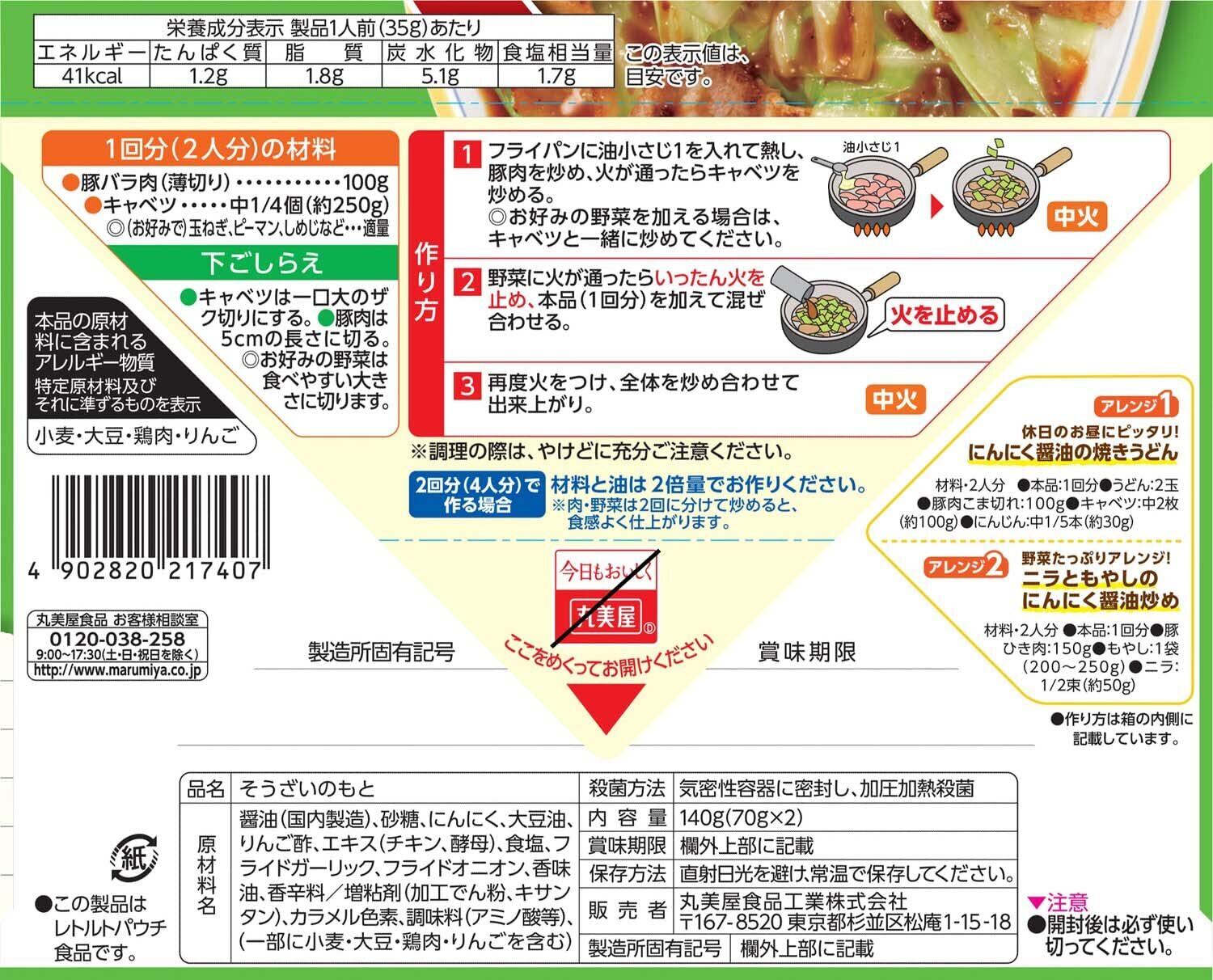 丸美屋 おうち食堂 豚とキャベツのにんにく醤油炒めの素(2人前×2回分) 140g×5個
