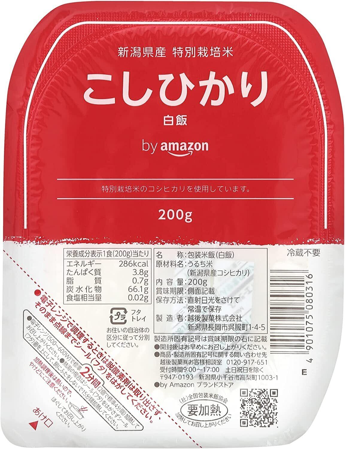 by Amazon パックご飯 新潟県産 特別栽培米 こしひかり 200g×5個(白米)