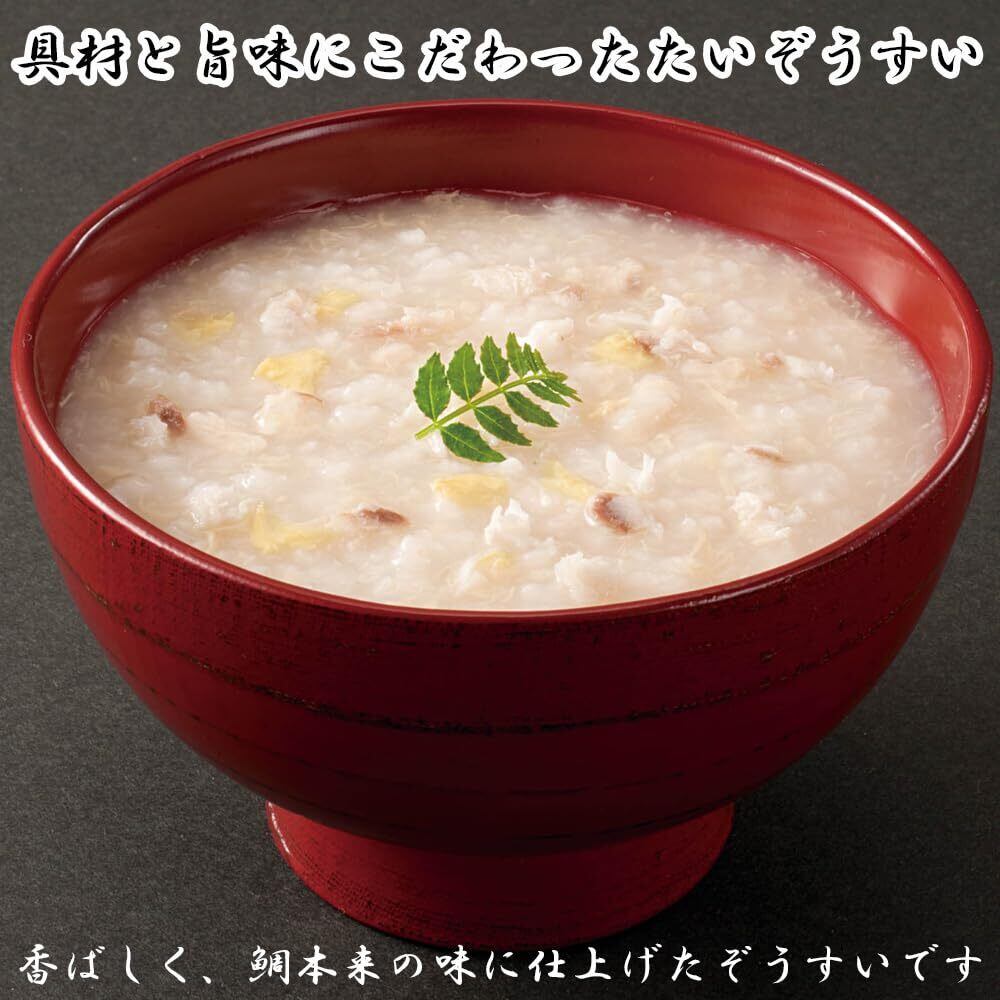 国産焼真鯛を使用し、香りと風味にこだわりました。香ばしく、鯛本来の味に仕上げたぞうすいです。