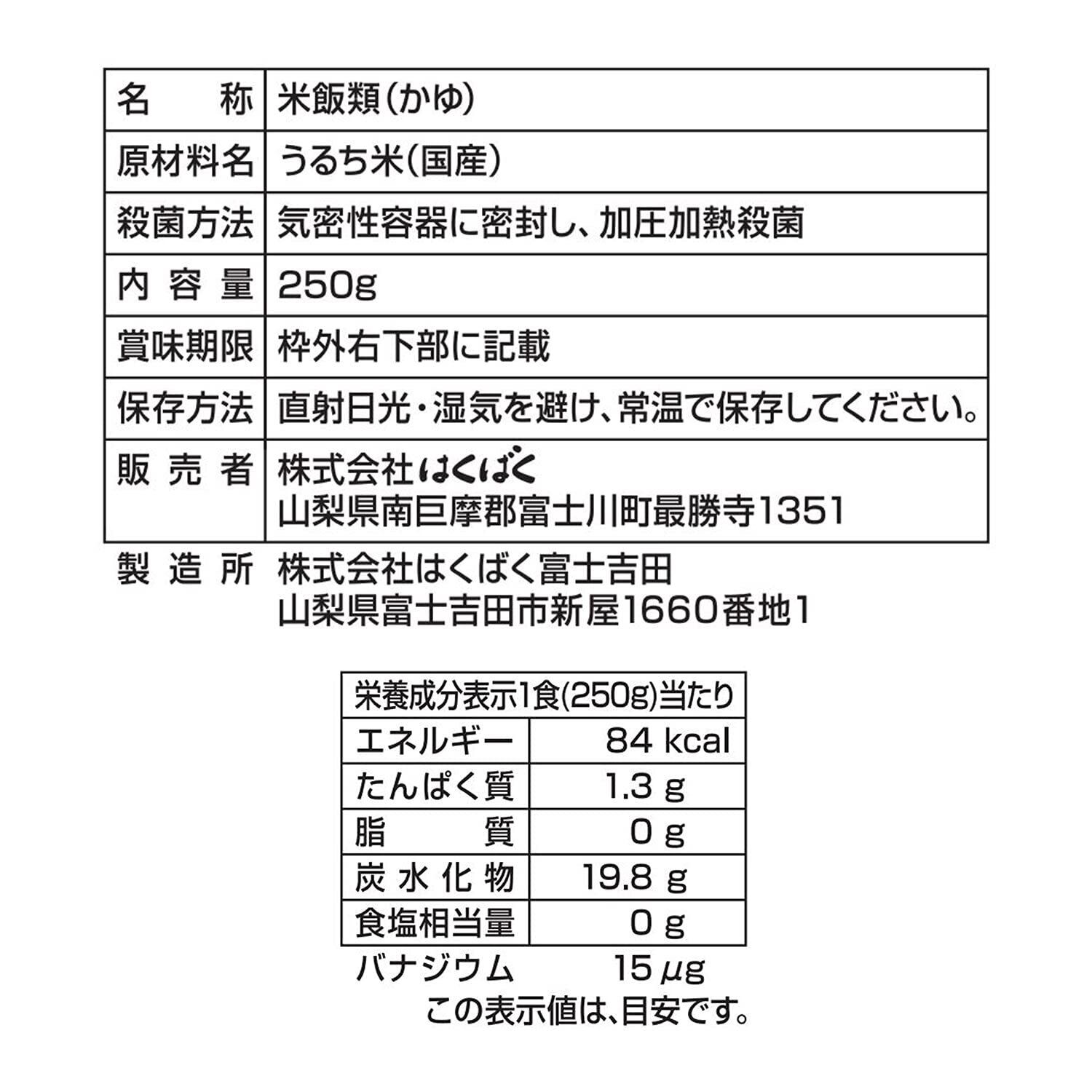 はくばく おかゆ 白がゆ 250g×8袋