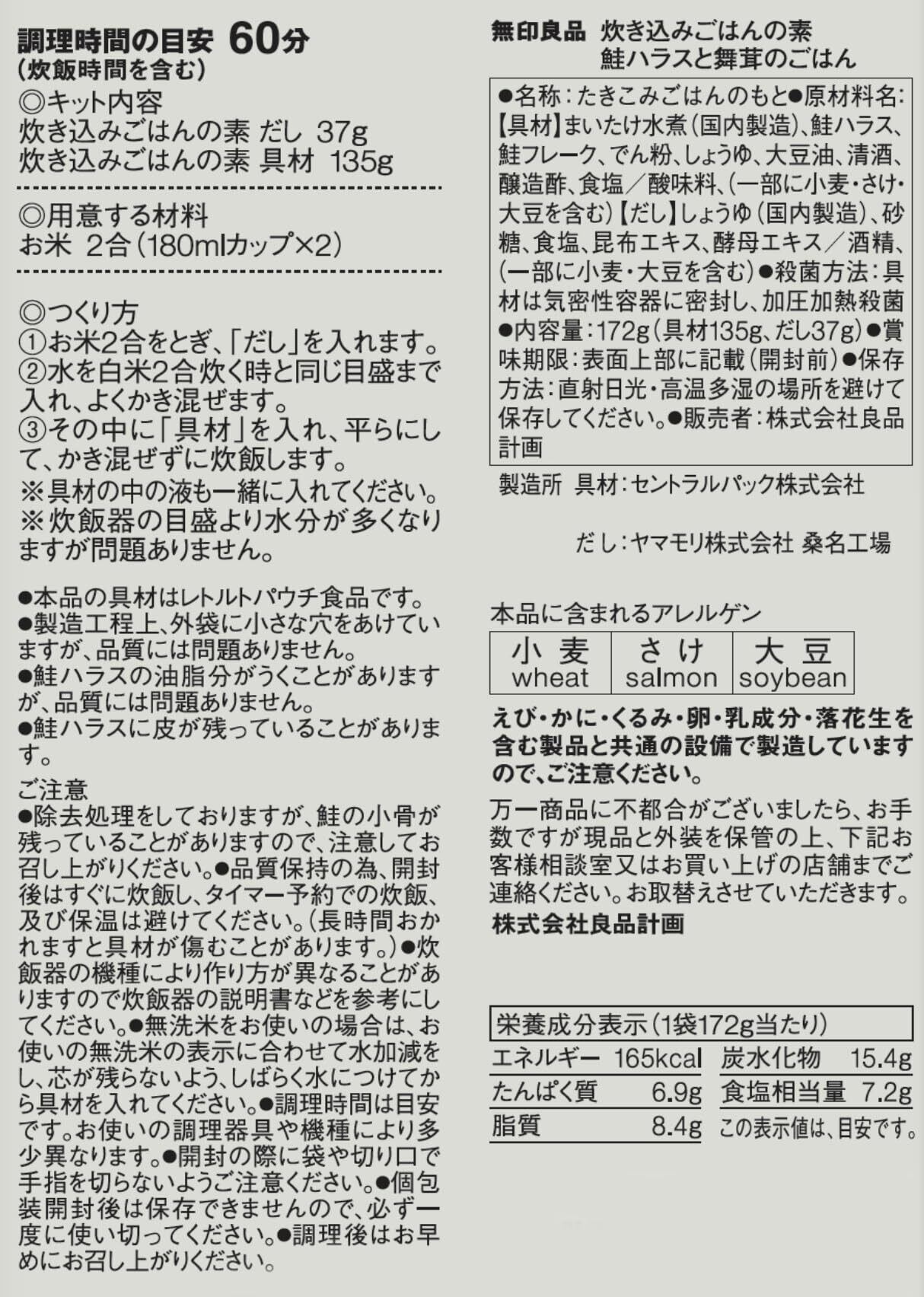 無印良品 炊き込みごはんの素 鮭ハラスと舞茸のごはん 172g 2~3人前 TBB28A4S