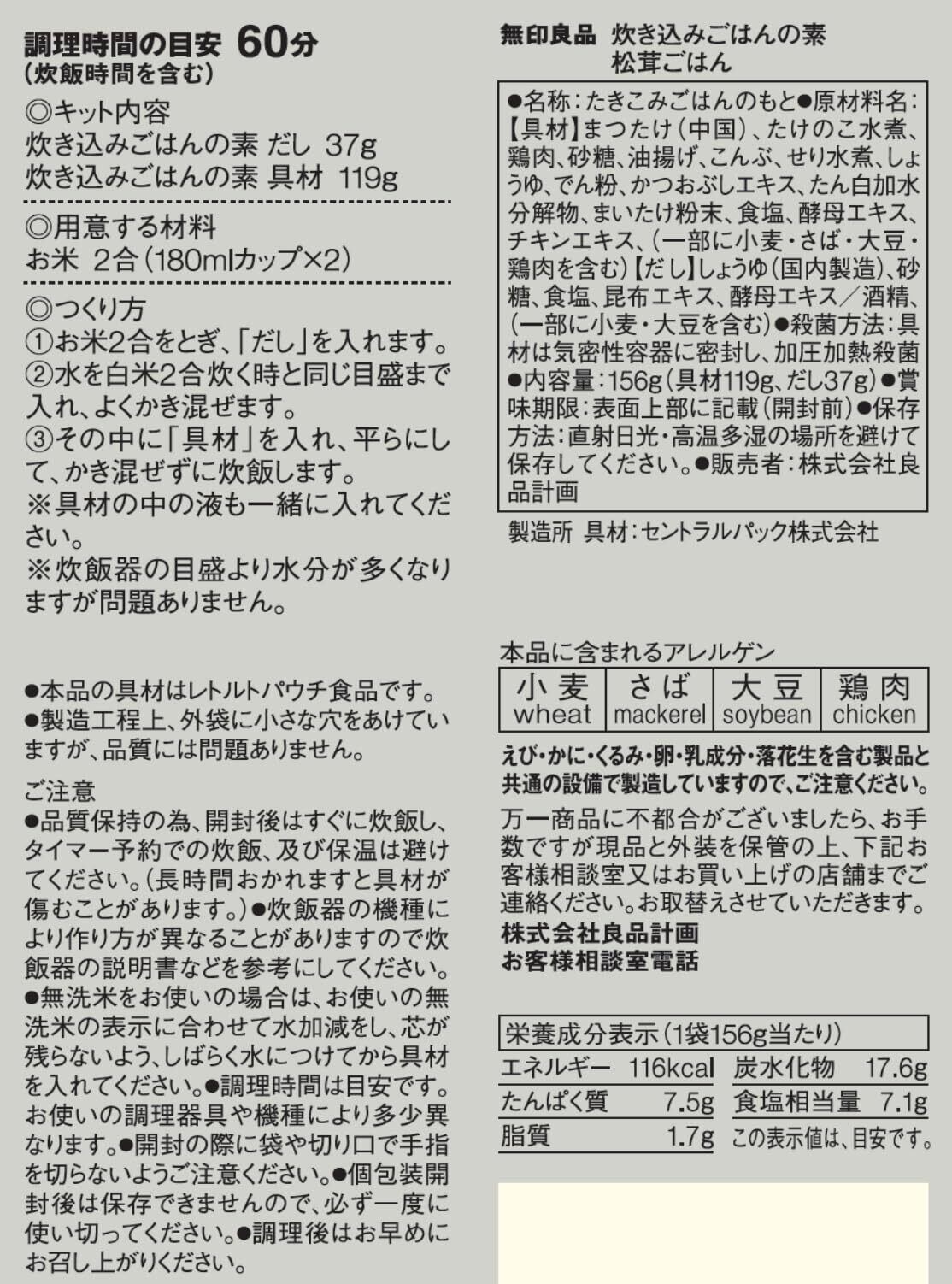 無印良品 炊き込みごはんの素 松茸ごはん 156g(お米2合用2~3人前)84431067