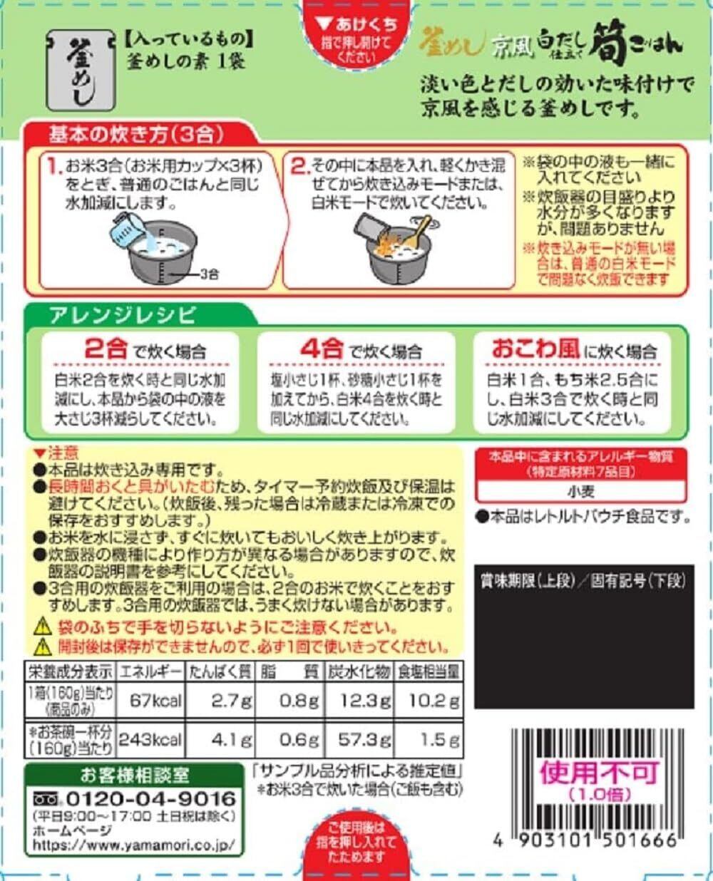 ヤマモリ ご当地 京風白だし仕立て 筍ごはん 160g ×5個